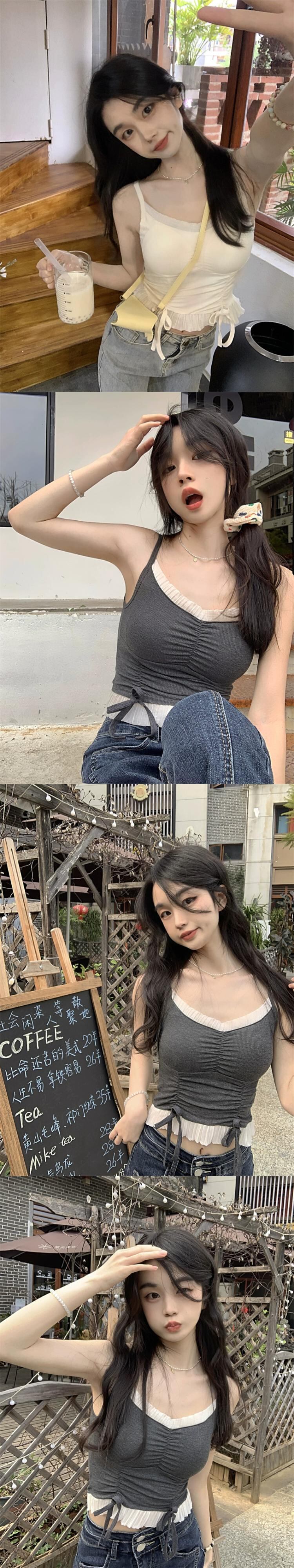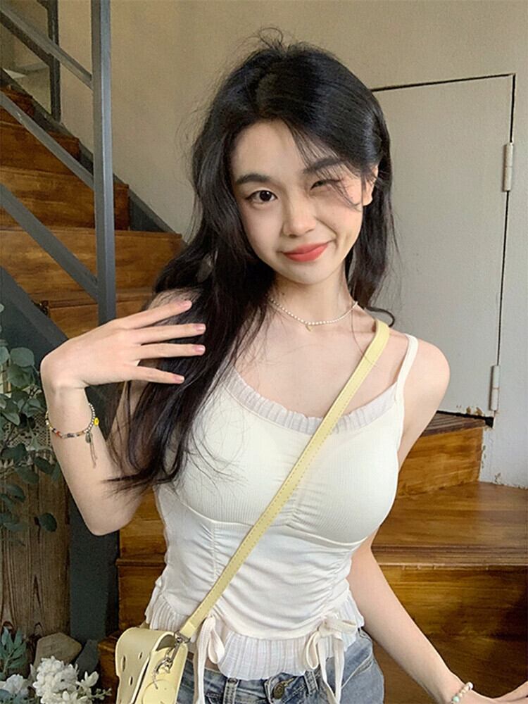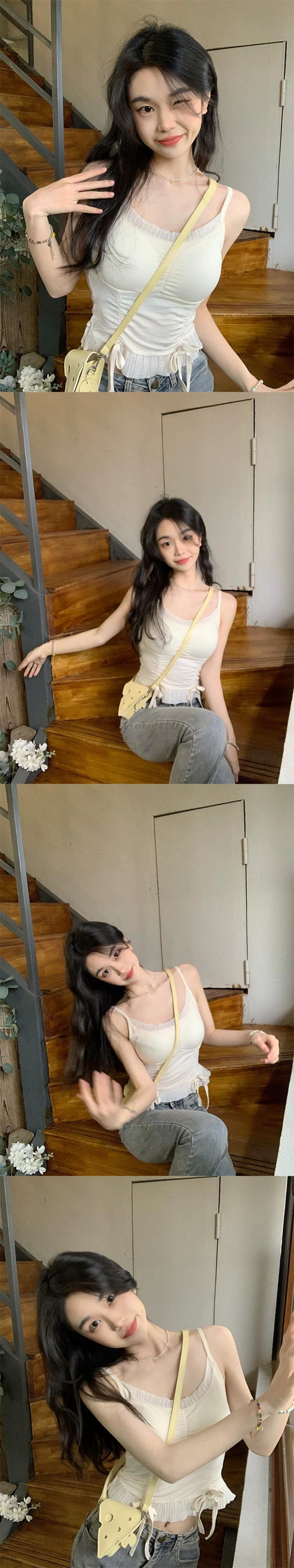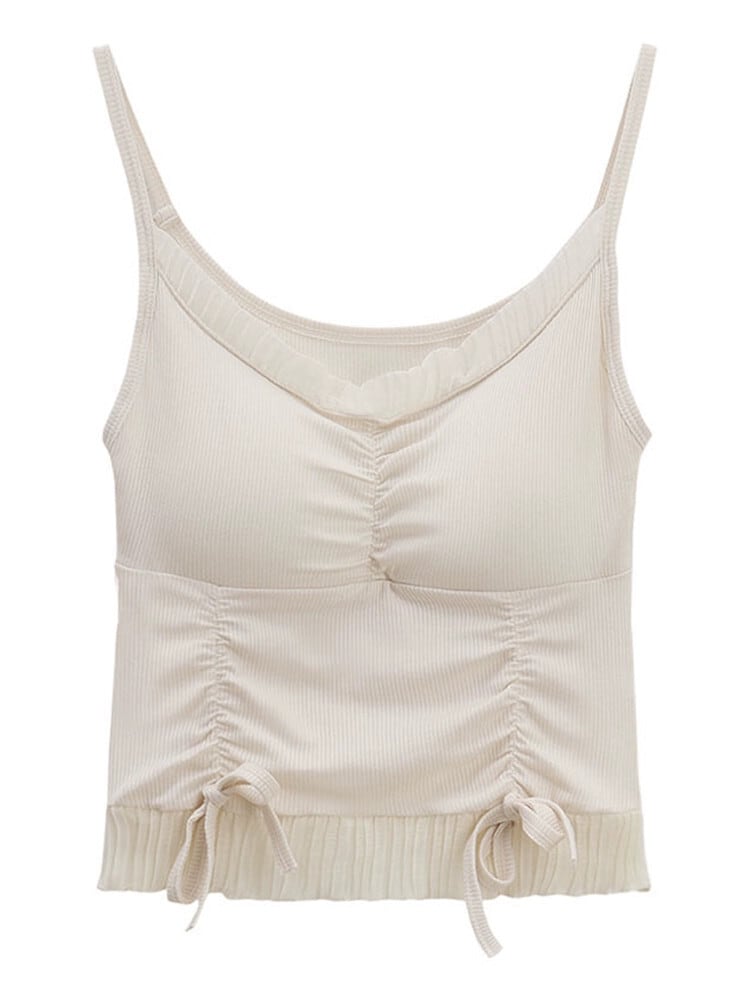 甘い欲望風の木の耳胸パッド巾着キャミソールサマーベストの内側と外側を着てスリムトップ女性 大人ガーリー スウィート キュート カジュアル 夏物 missk49074292406