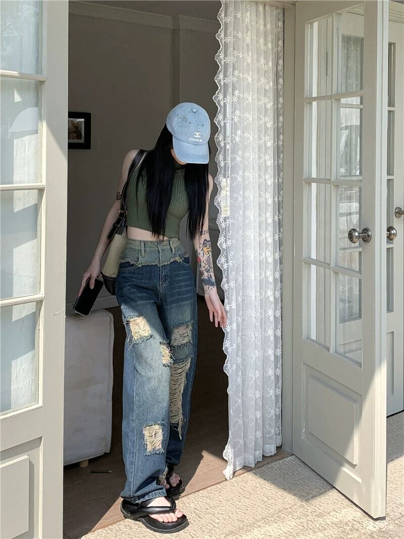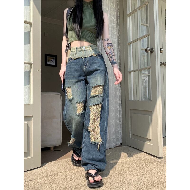 レトロリッピングジーンズ乞食パンツ女性の夏の2023新しいハイウエスト痩身デザインセンスワイドレッグモップパンツ ハイウェスト サマー 夏物 ワイドパンツ missk40534153048