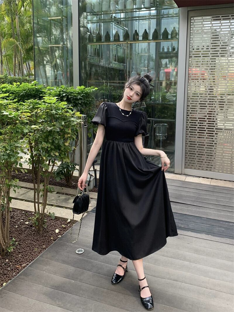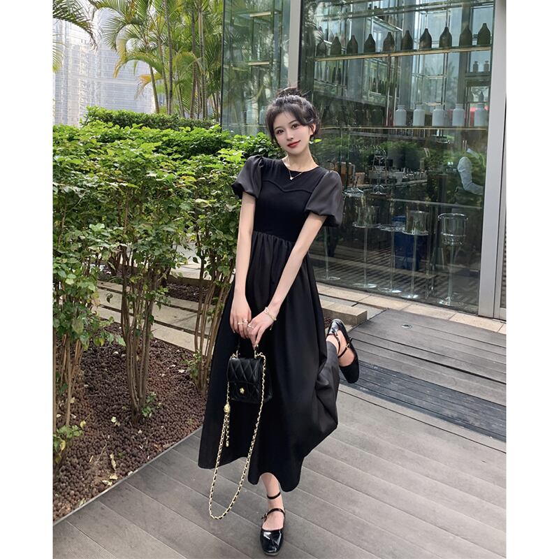 フレンチスタイルの黒の高級感ドレス夏2023新しい気質ハイウエストバブル半袖ミドル丈スカートの女性 ハイウェスト ブラック サマー 夏物 missk85162881267