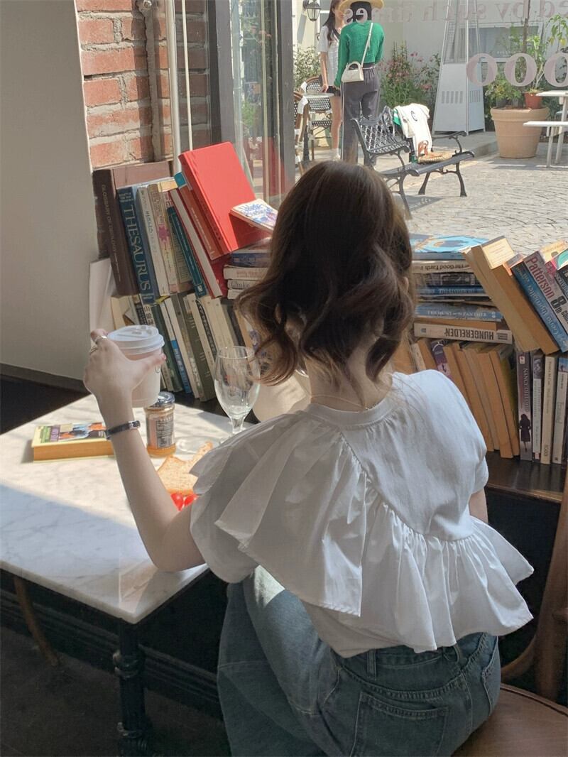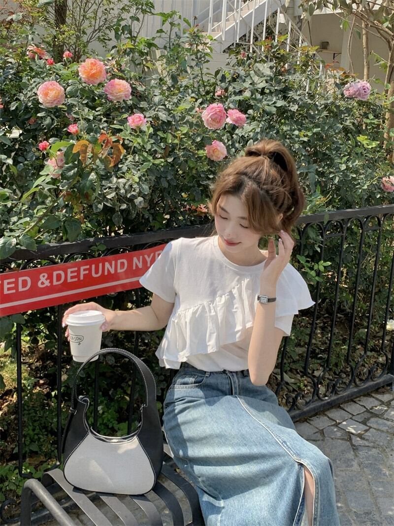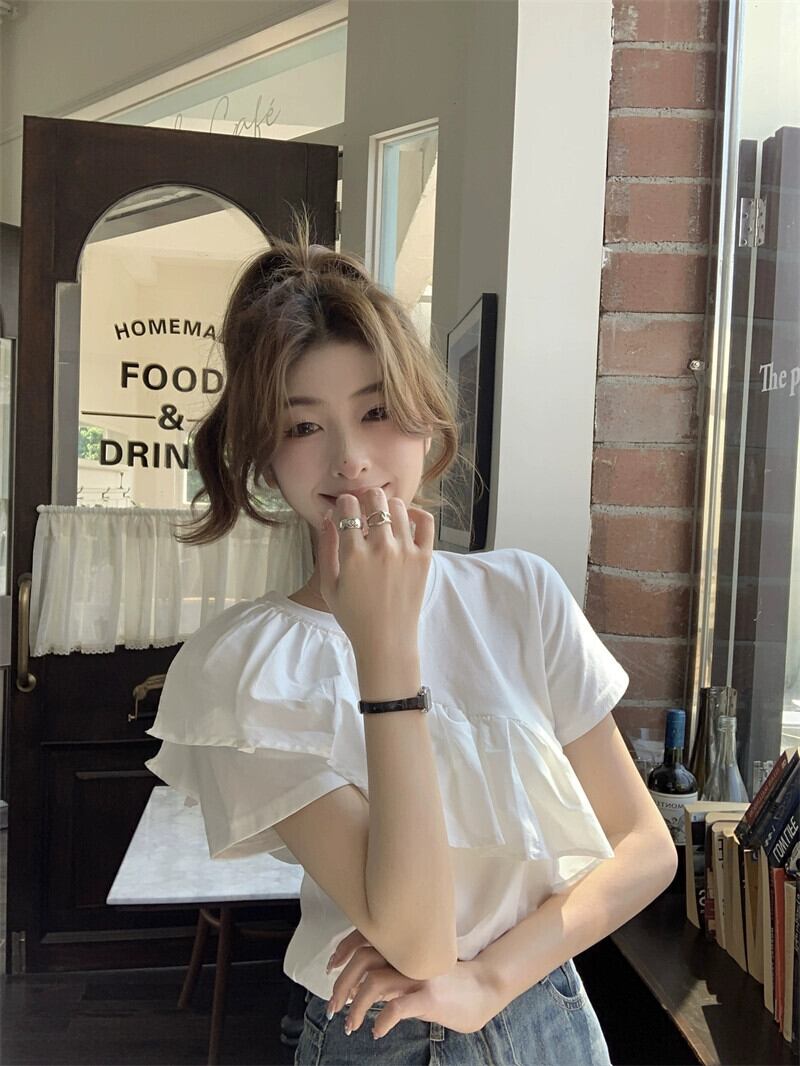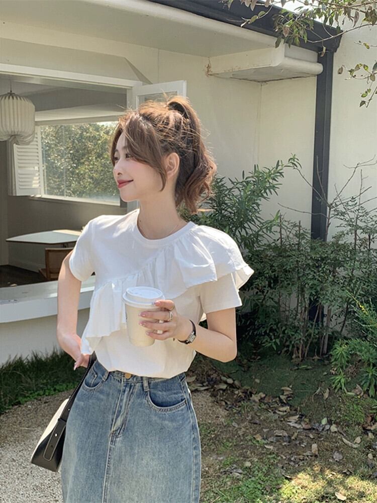 フリル半袖Tシャツレディース夏バージョン2023新しいデザインセンスニッチホワイトユニークでシックなトップイン サマー 夏物 missk93420209551