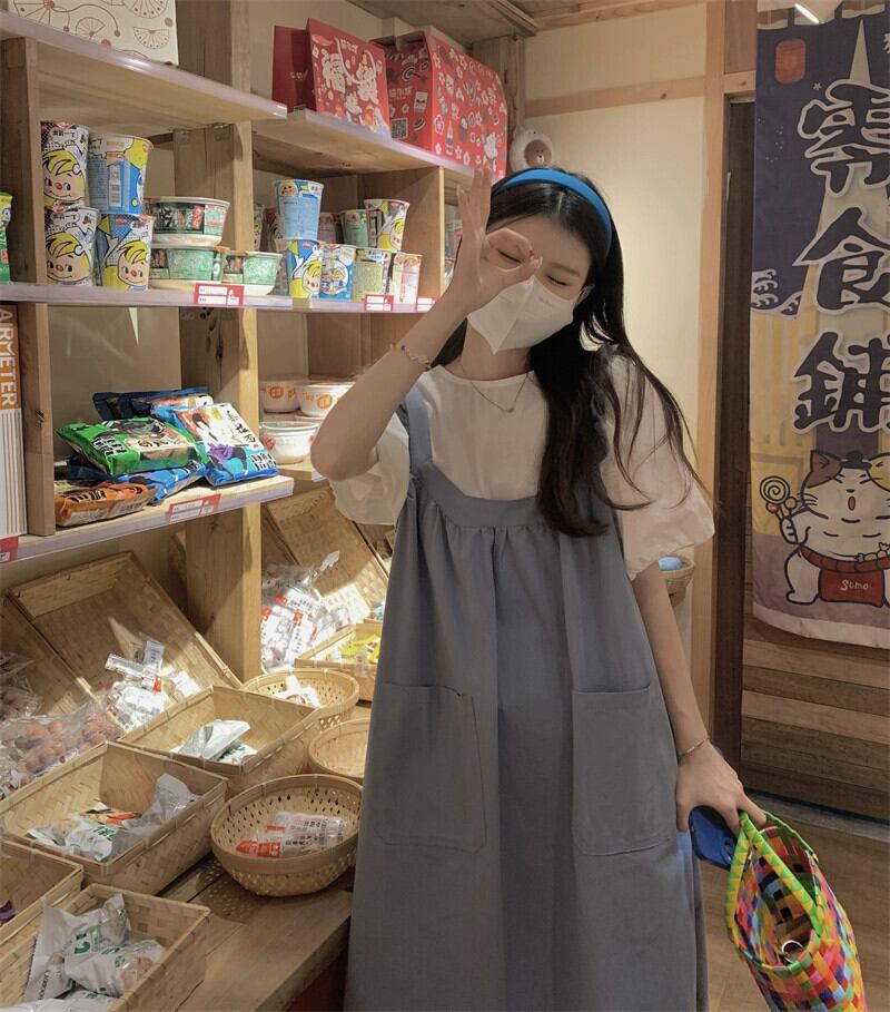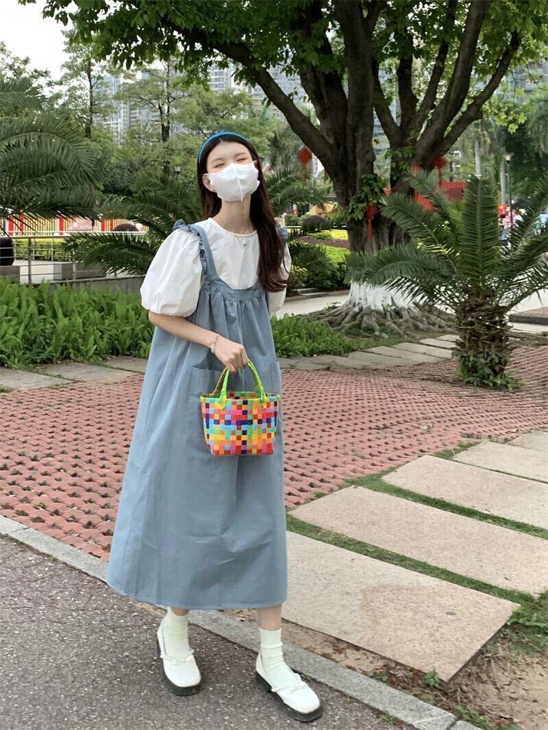 小さな新鮮な木の耳ルーズミッドレングスサスペンダードレスパフスリーブシャツ女性の夏の2023新しいスーツ サマー 夏物 missk56041827671