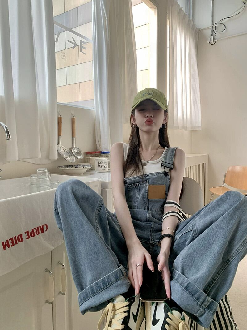 レトロデニムオーバーオール女性の夏 2023 新しい小さなカーリーエッジ年齢を軽減ルーズワイドレッグジャンプスーツロングパンツ サマー 夏物 missk52608569267