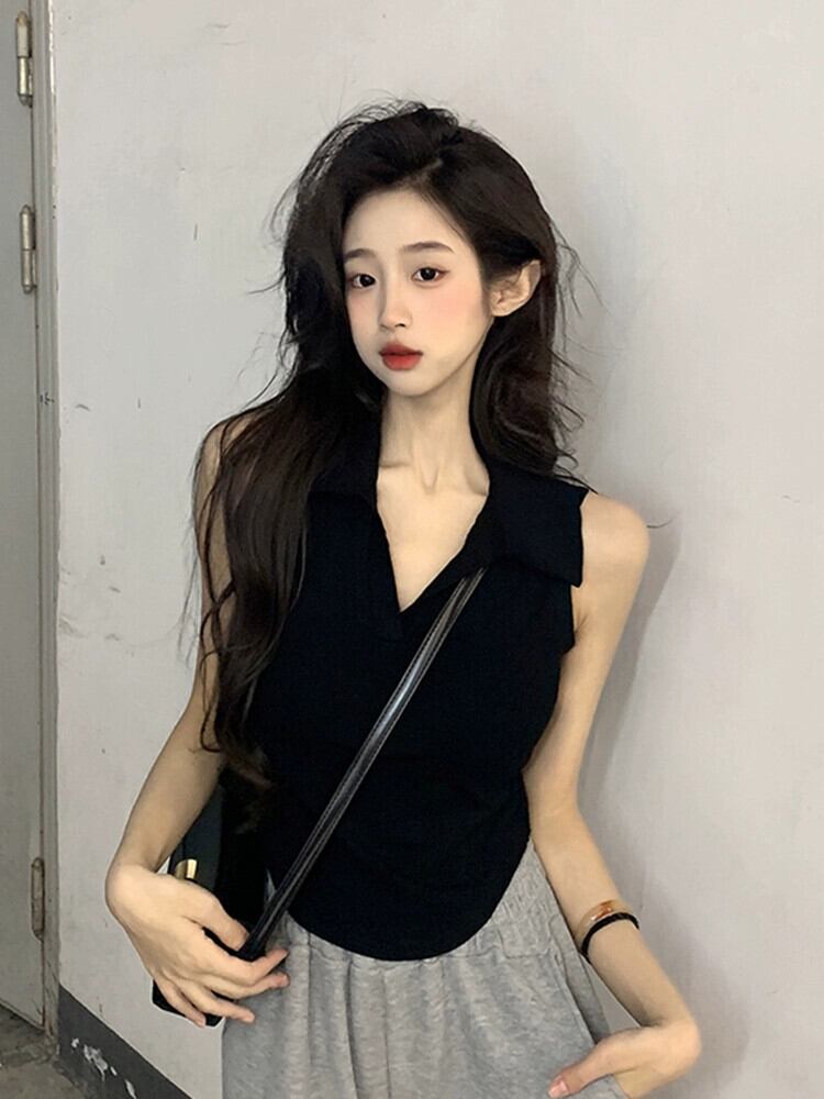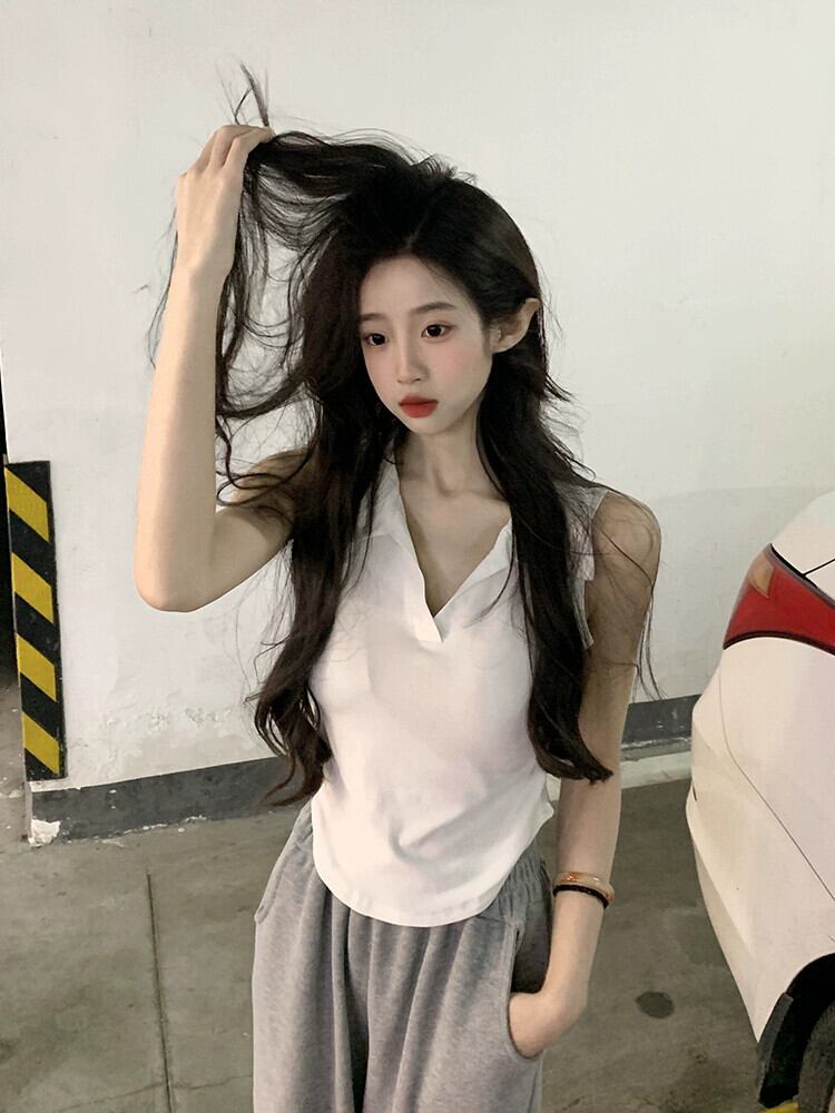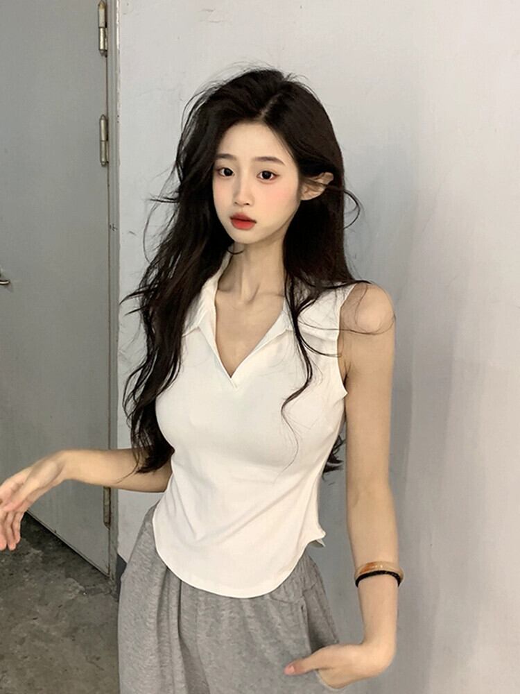 スパイス V ネック ノースリーブ ショート ベスト Tシャツ レディース 夏の新しいデザインセンス ニッチ スリム ホワイト ボトム シャツ トップス サマー 夏物 Vネック missk43074423935