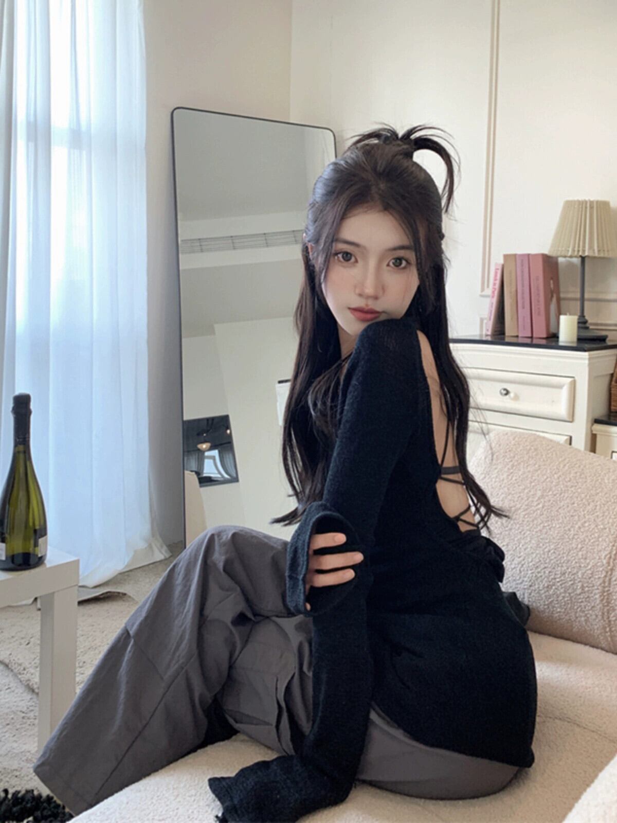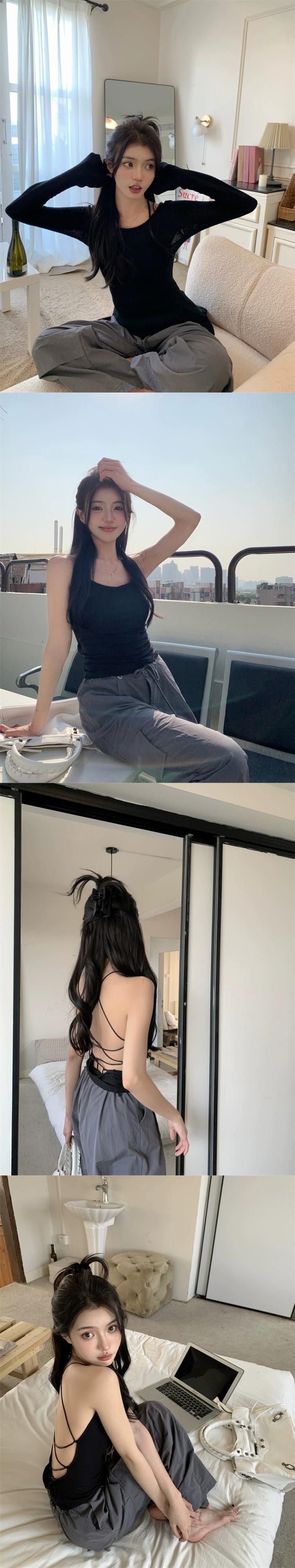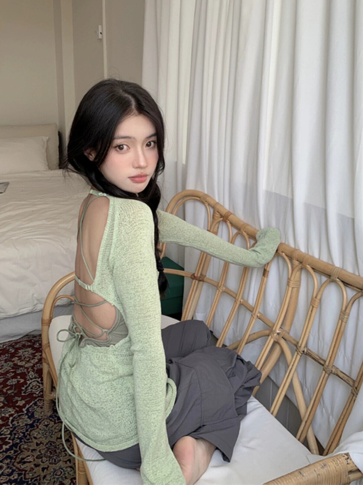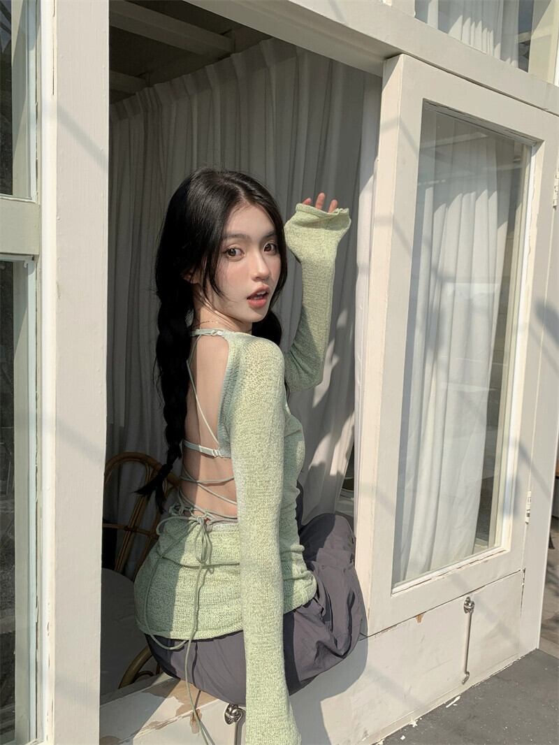 純粋な欲望のスタイルの女の子セクシーな背中の開いたスリムニットトップ夏の新しいインナーショートキャミソールスーツ女性 サマー 夏物 missk16490789901
