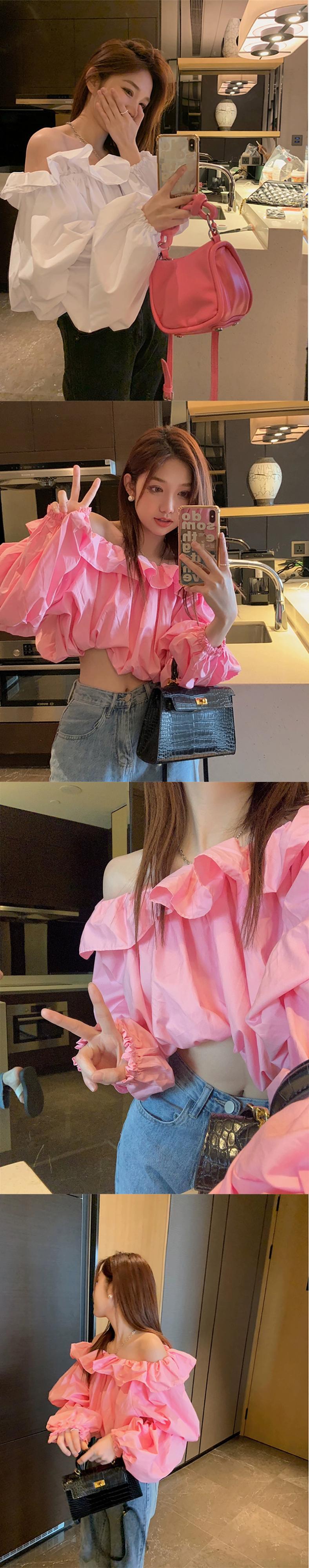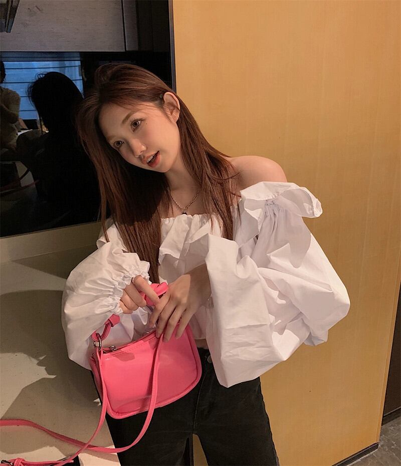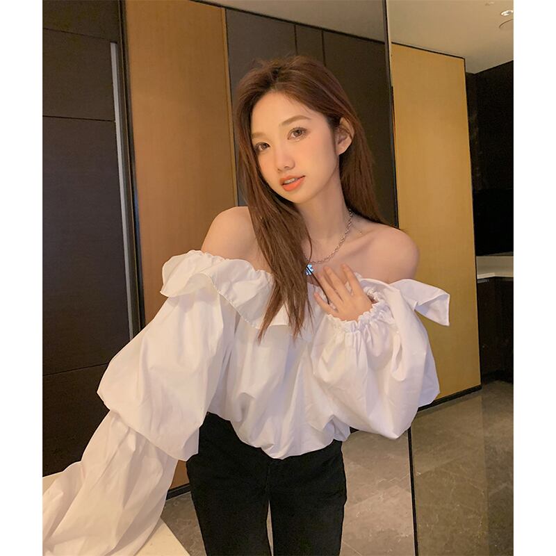 夏バージョン 2023 新しいファッション eign スタイル年齢を軽減ワンショルダーフリルパフスリーブショート長袖シャツ女性 ロング サマー 夏物 missk46219105966