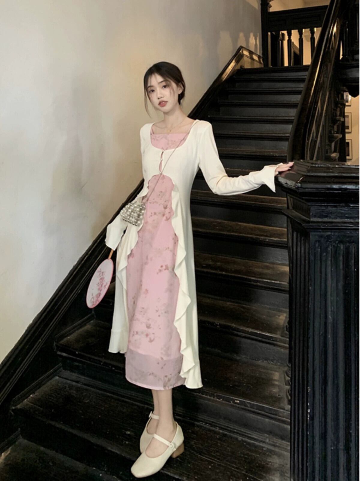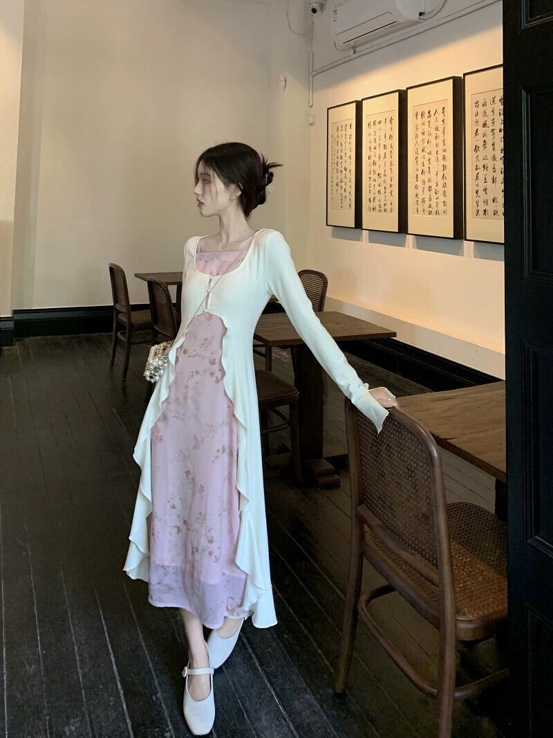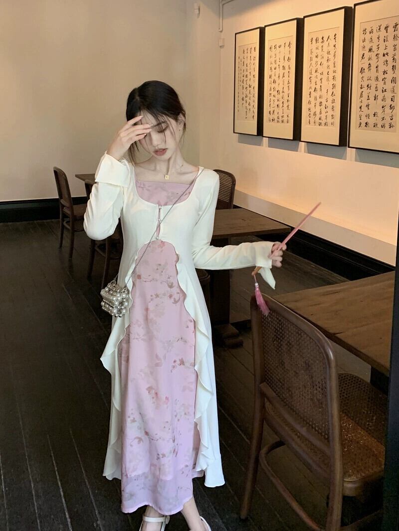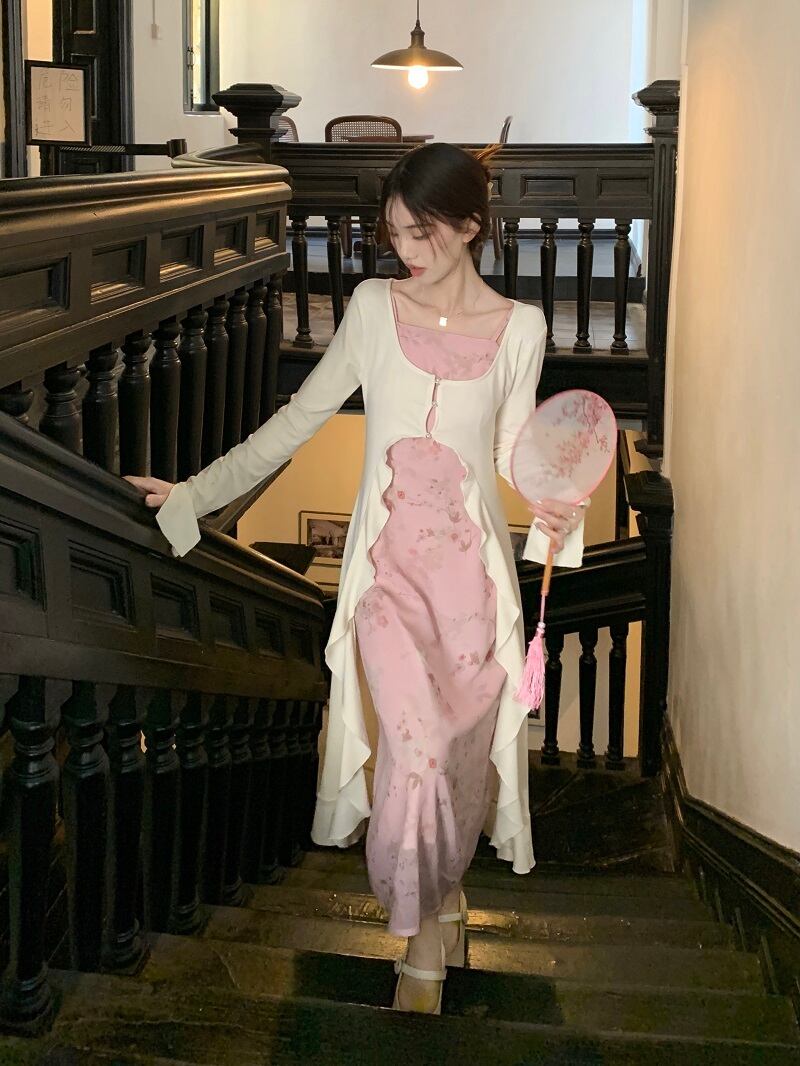 中国風のデザインセンス優しい花サスペンダーロング日焼け止めブラウス女性の夏の 2023 新しいファッションツーピースセット サマー 夏物 花柄 missk23281009117