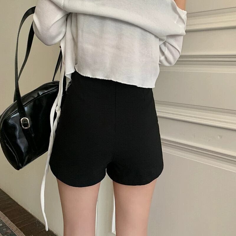 ウエストゴムショーツ女性の夏バージョン2023新しい痩身オールマッチパンツは黒のワイドレッグカジュアルパンツを着ています ブラック エラスティック 伸縮 サマー 夏物 ブルマー missk57644458702