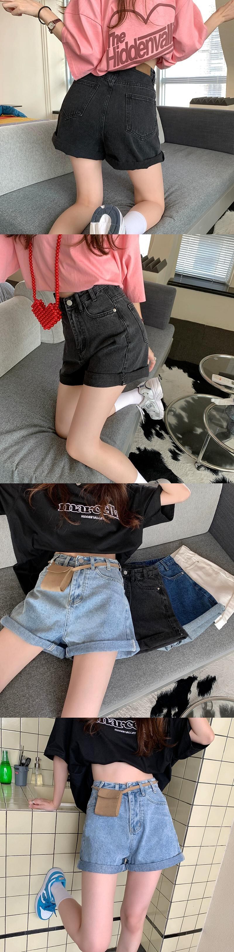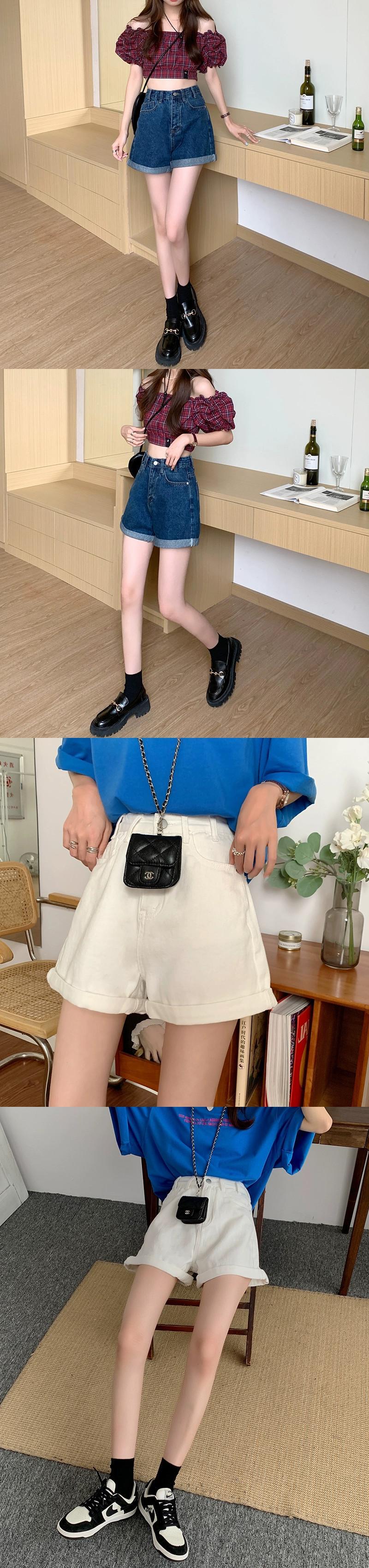 ウエストロールエッジデニムショートパンツ レディース 2023年夏新作 ライトカラー 薄手 オールマッチパンツ ワイドパンツ サマー 夏物 ショーツ ブルマー missk6334402450