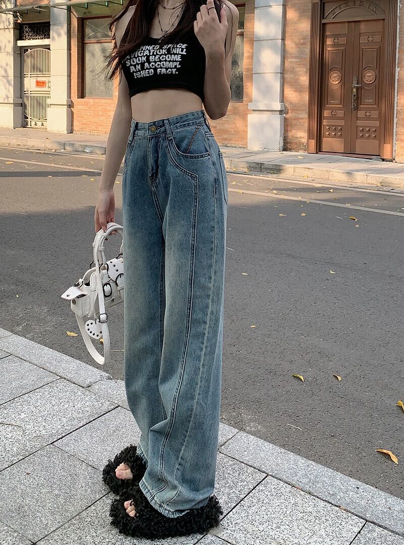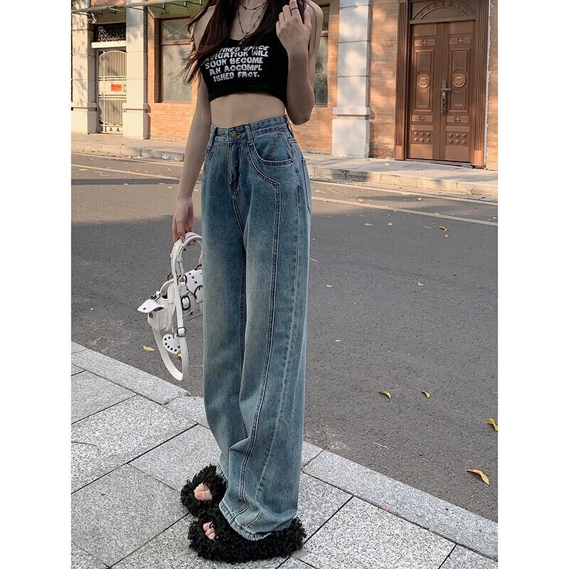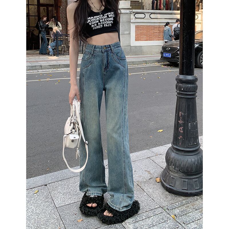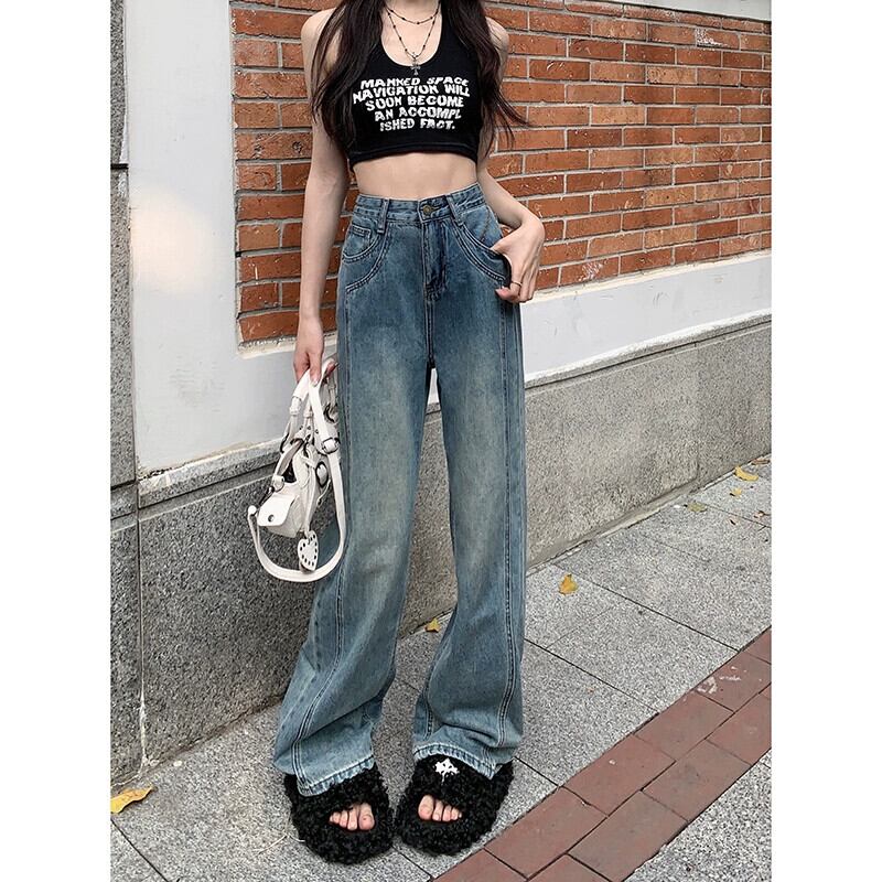 ウォッシュドレトロハイウエストジーンズレディース2023年夏新デザインセンスニッチスリムオールマッチワイドレッグモップパンツ サマー 夏物 missk32161616605