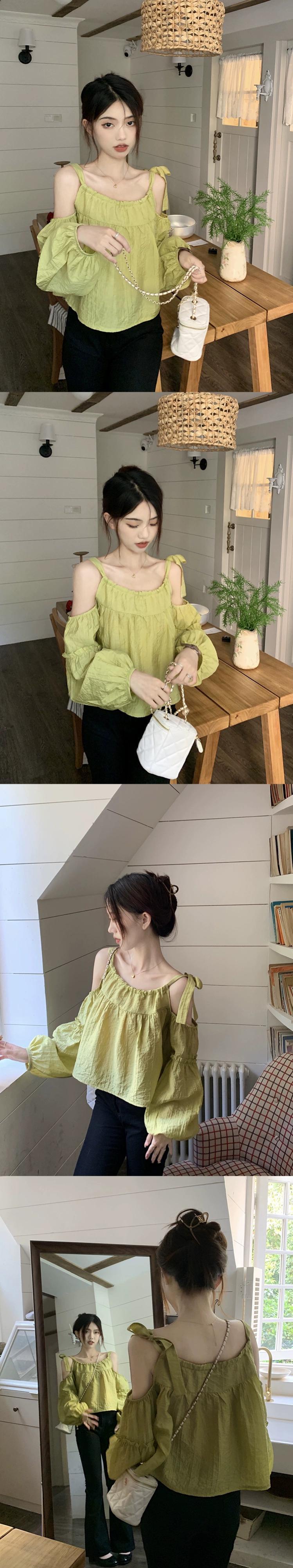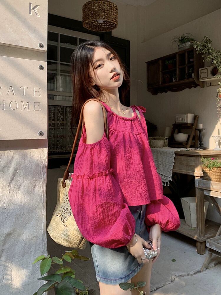 パフスリーブローズレッドシャツレディース2023年夏新デザインセンスストラップレスネクタイシックな長袖日焼け止めトップ ロング サマー 夏物 missk52342854565