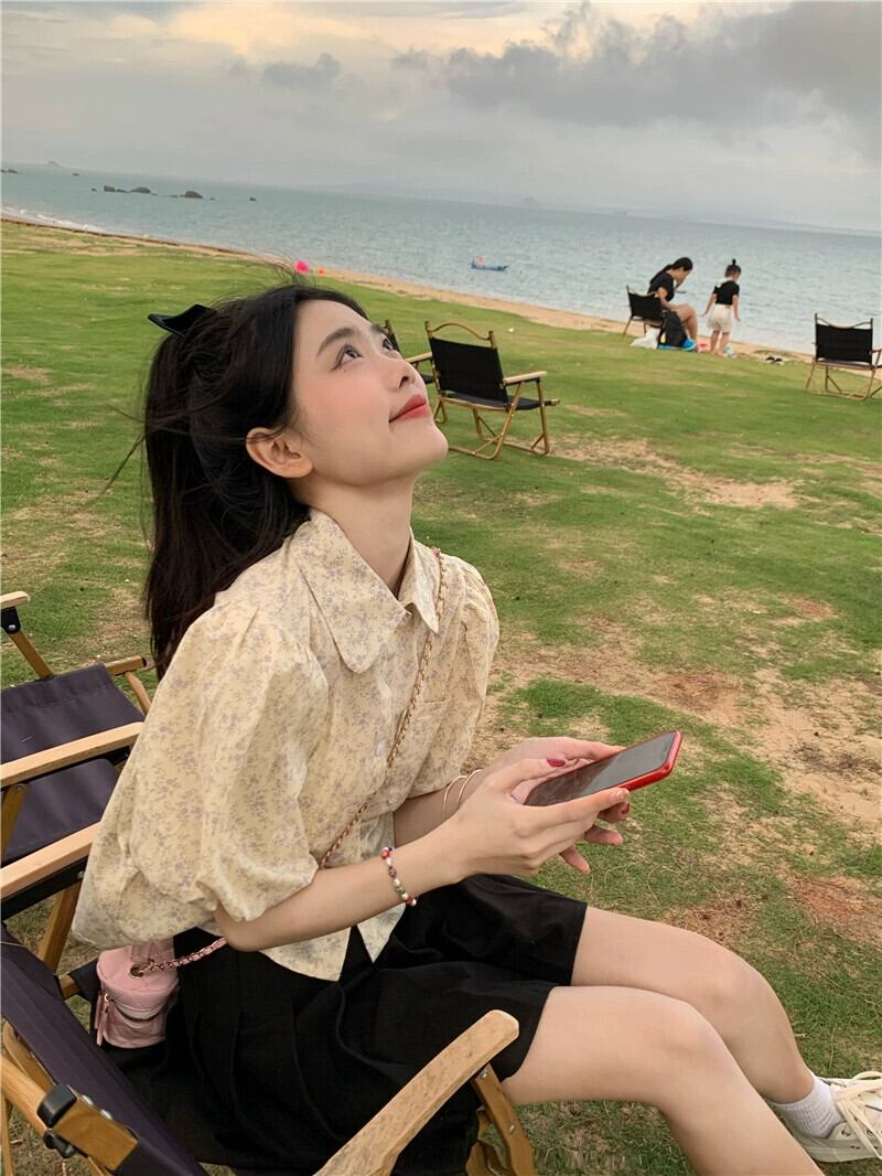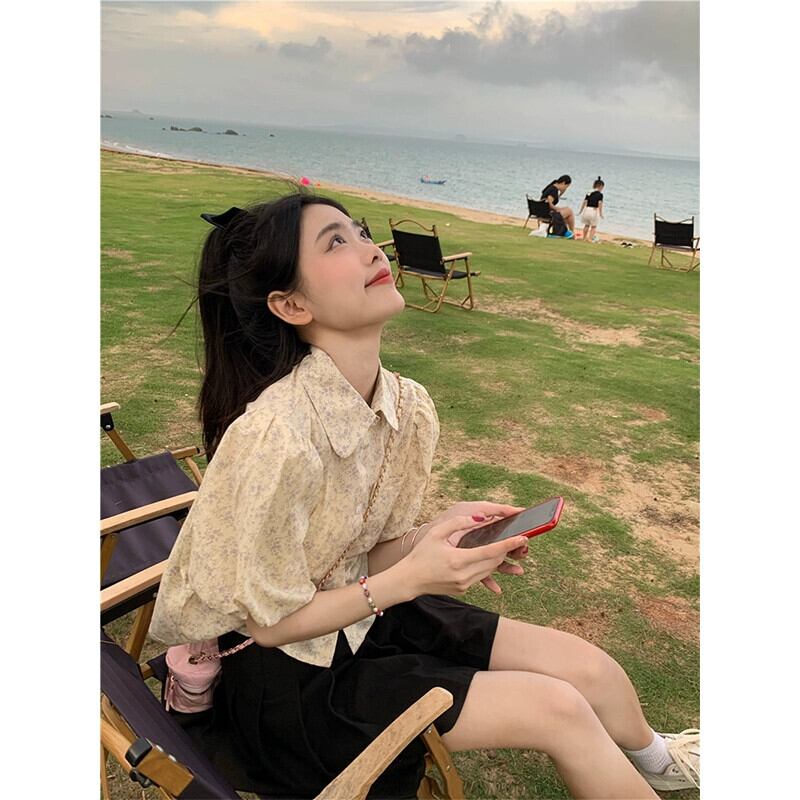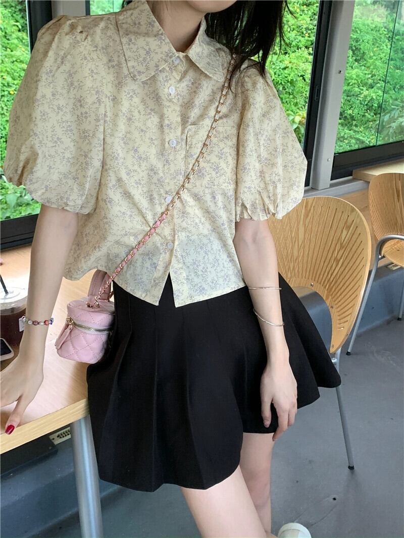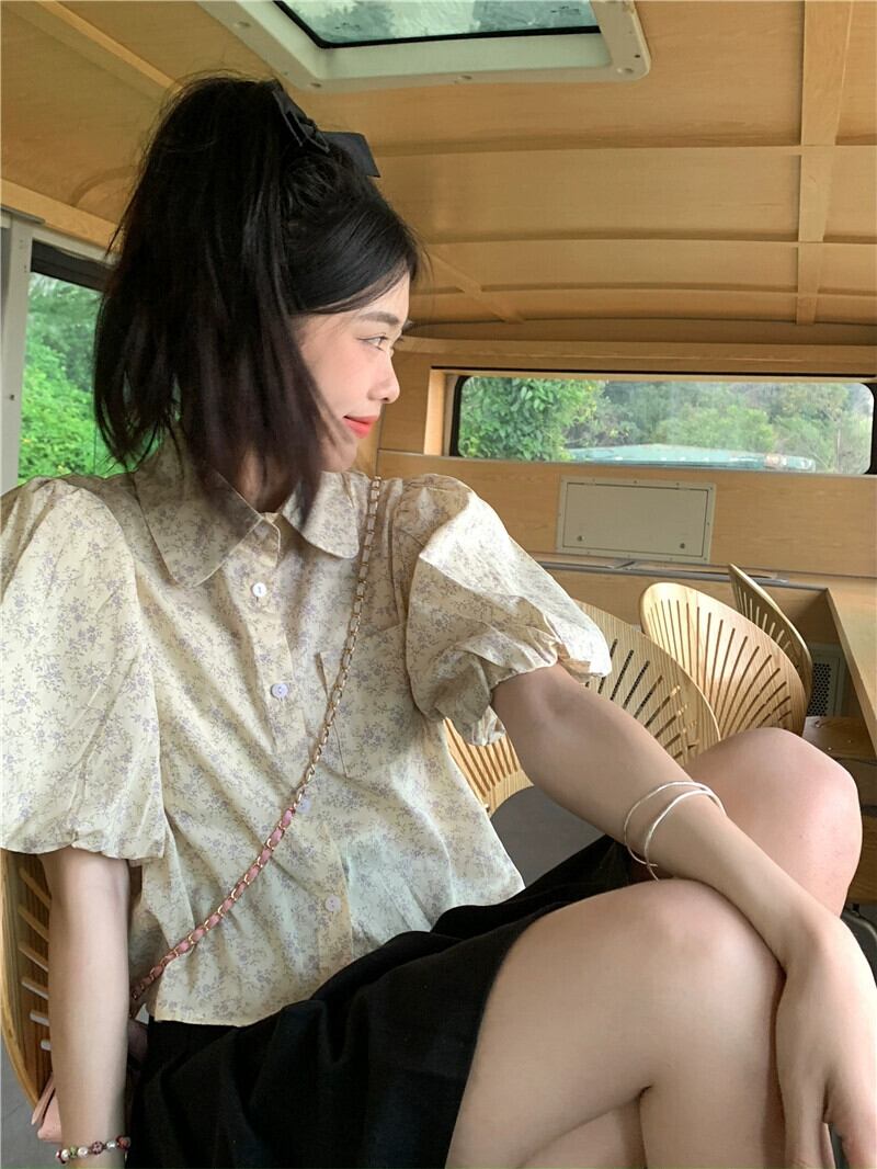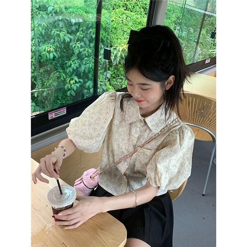 甘い花柄シャツ女性の夏の 2023 新しいパフスリーブドールカラーショートスタイルアインスタイルアウターウェア半袖トップ 大人ガーリー スウィート キュート カジュアル サマー 夏物 missk97830777133