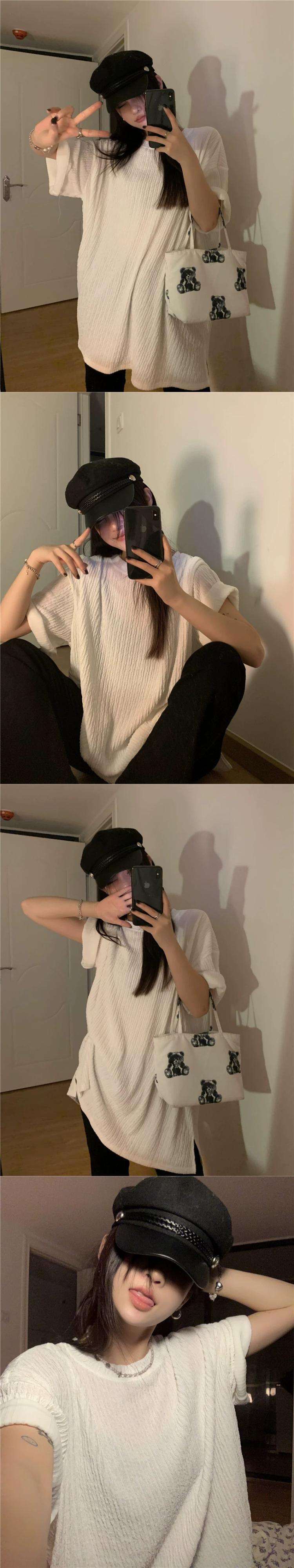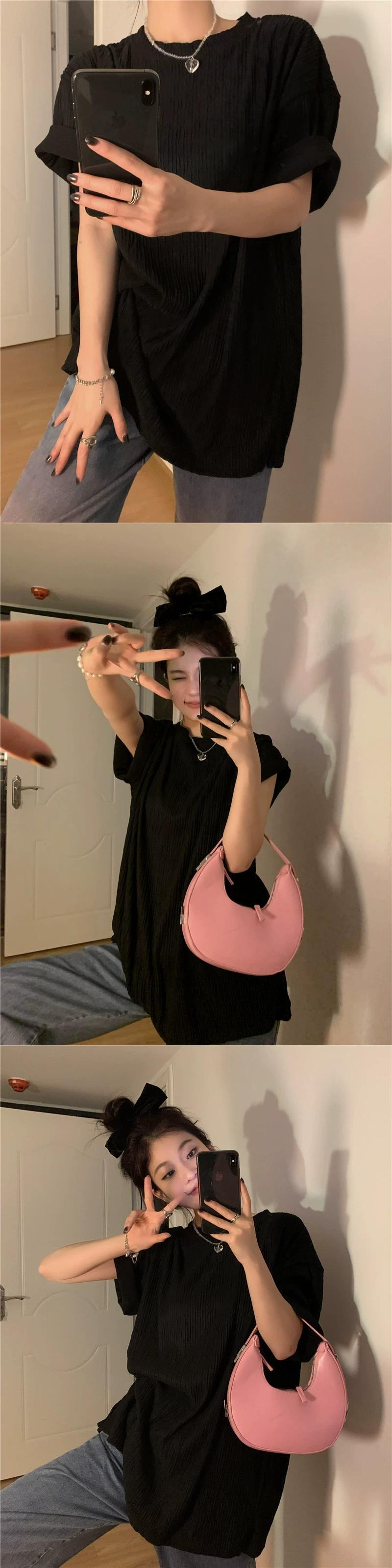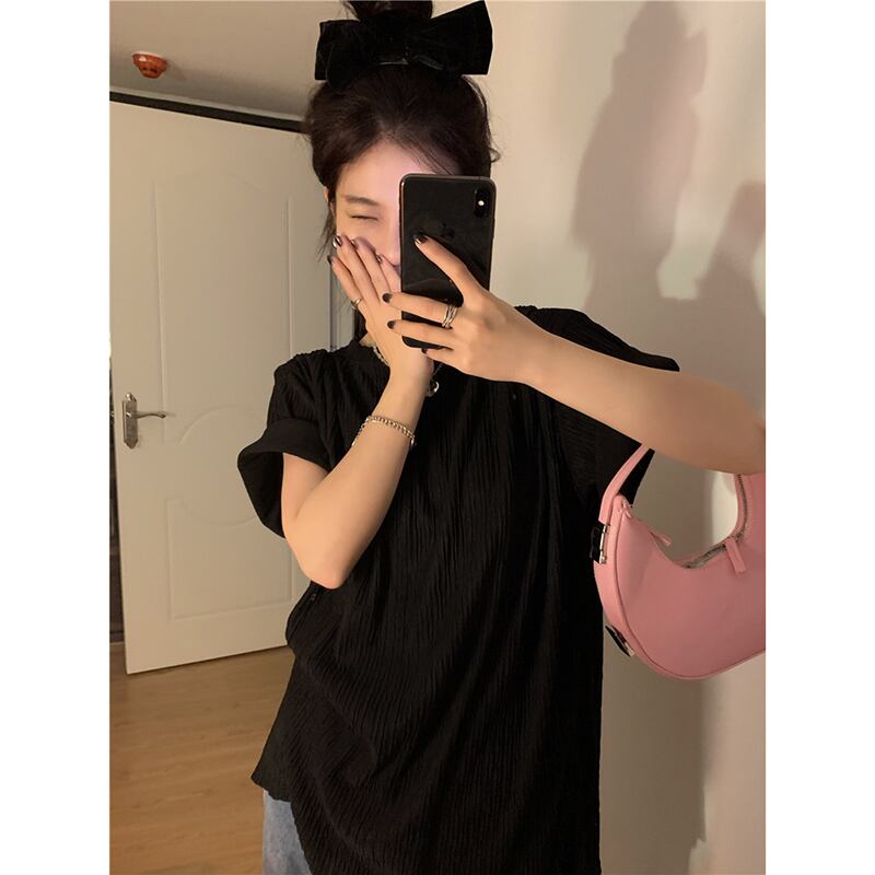 怠惰なスタイルの半袖 T シャツの女性の 2023 夏の新しい香港スタイルのレトロな折りデザインのルーズなミドル丈のトップ サマー 夏物 Tシャツ missk26891070380