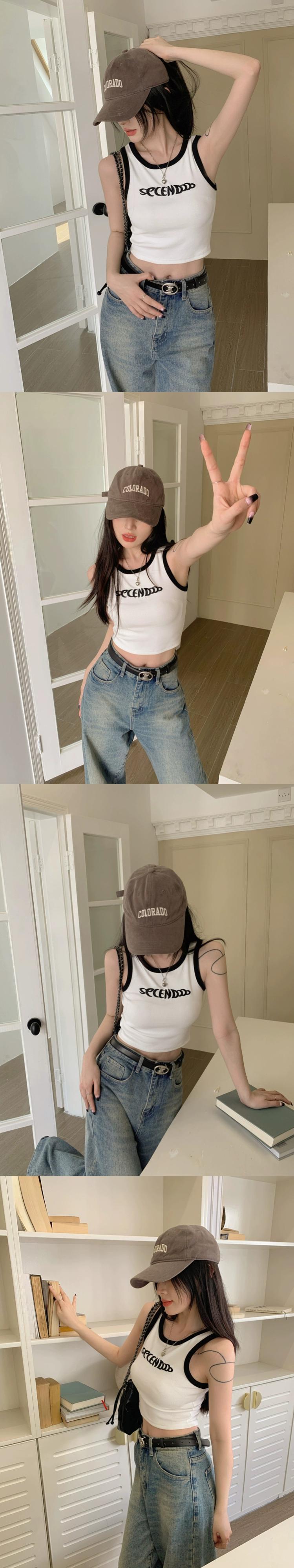文字刺繍アウターウェアショートベスト夏 2023 新しいファッションインナーウェアコントラストカラースリムトップ女性のトレンド レッド サマー 夏物 missk75314667244