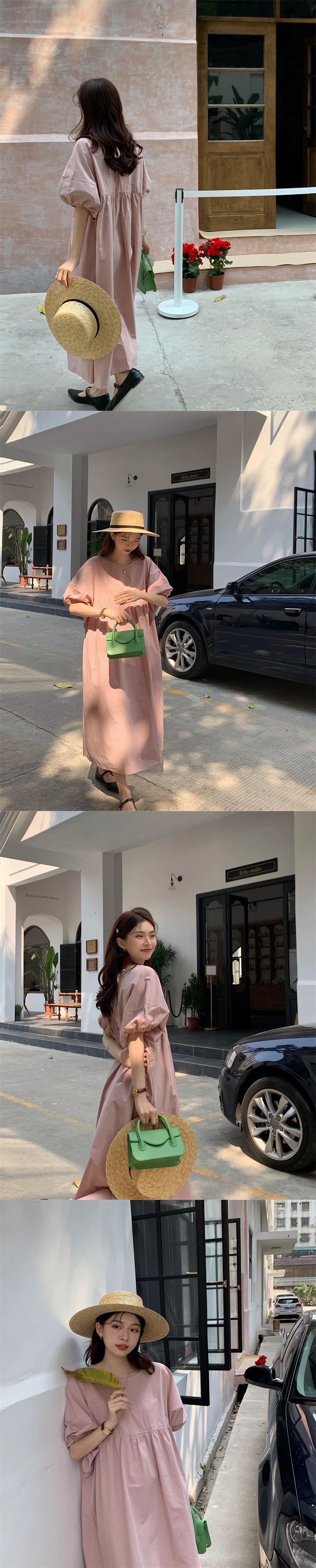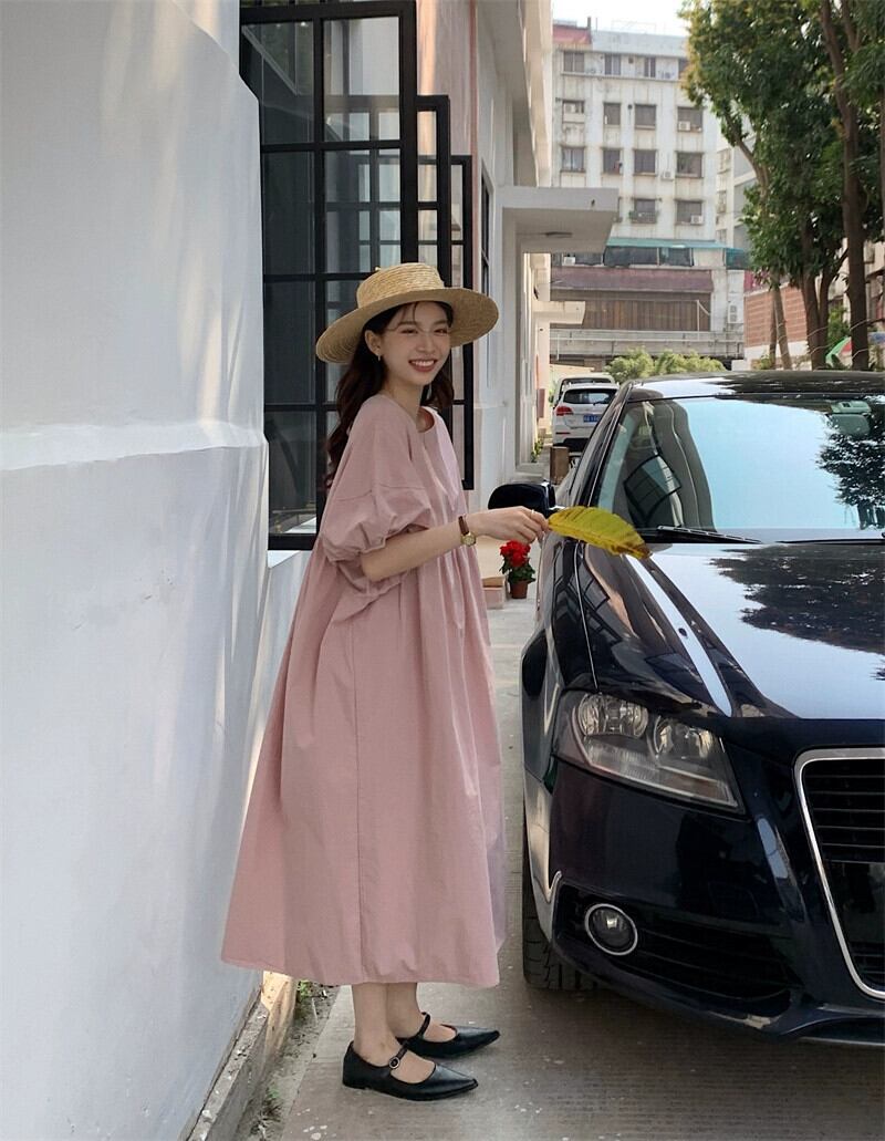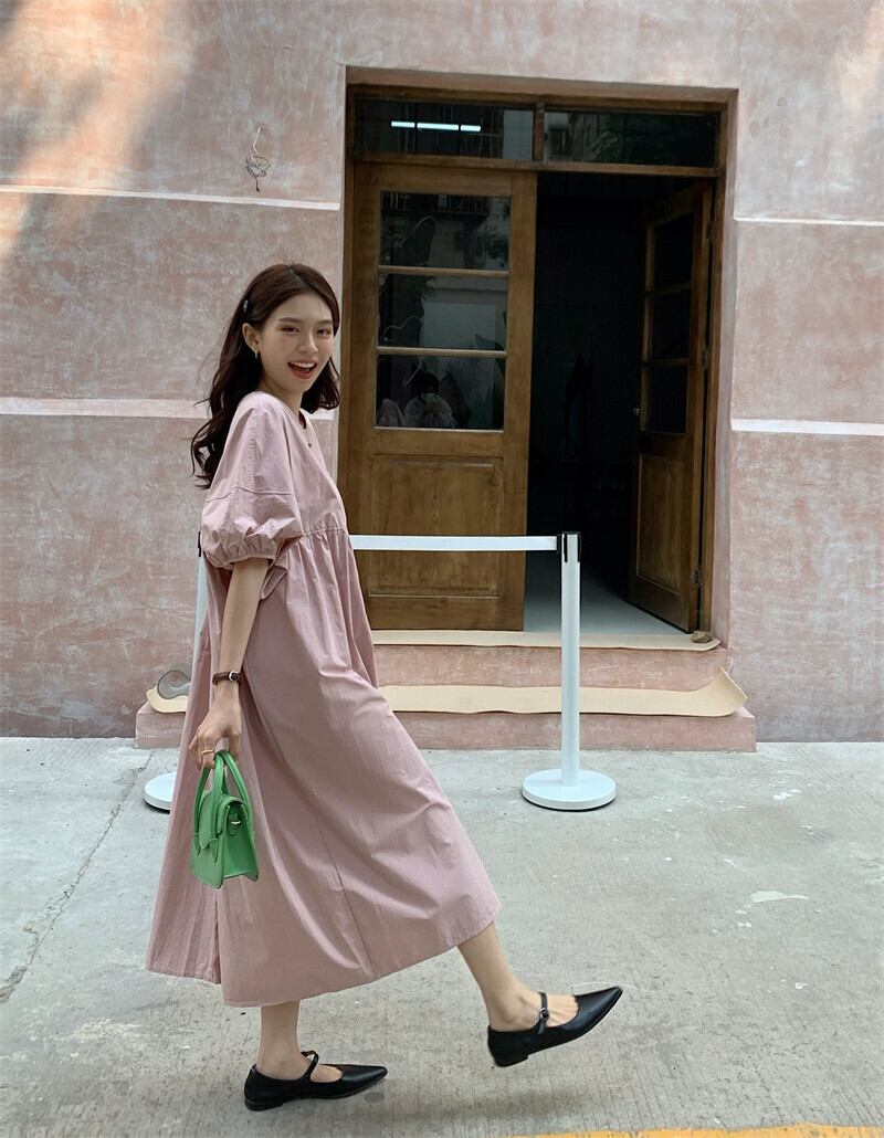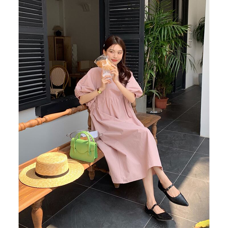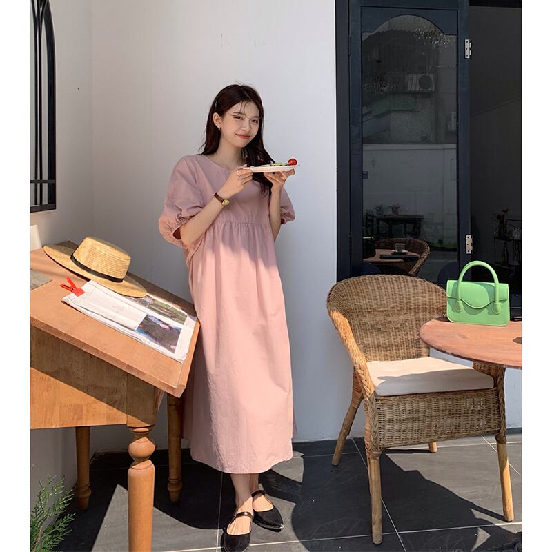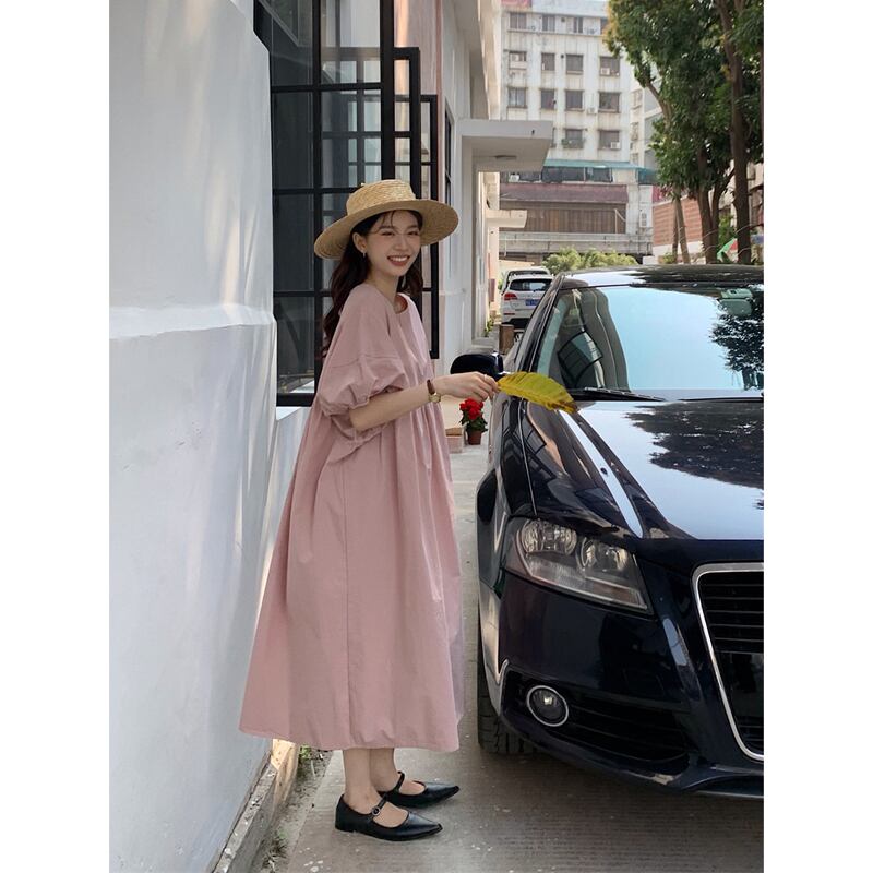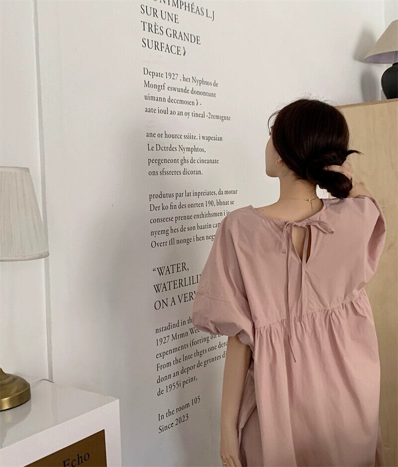 ガールズピンクパフスリーブドレス夏2023ゆるい気質バックタイロングスカート サマー 夏物 missk38855598530