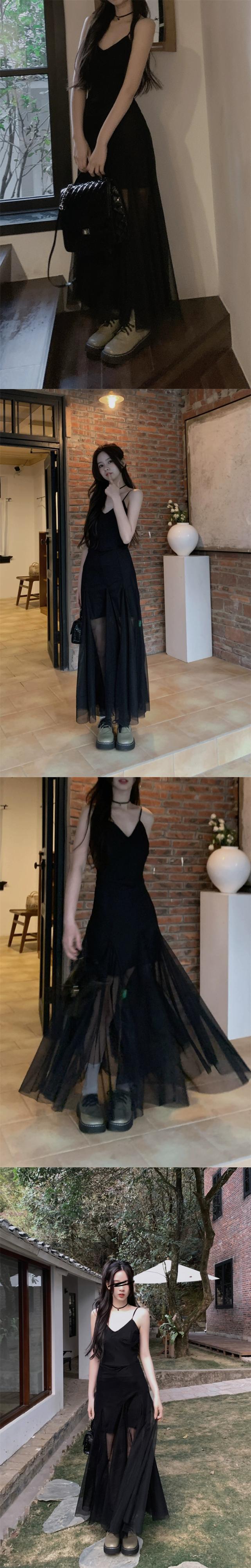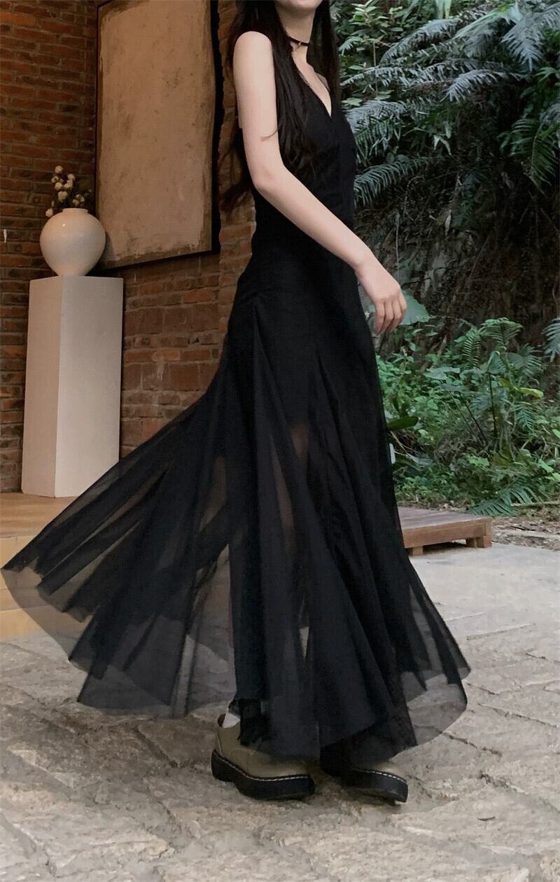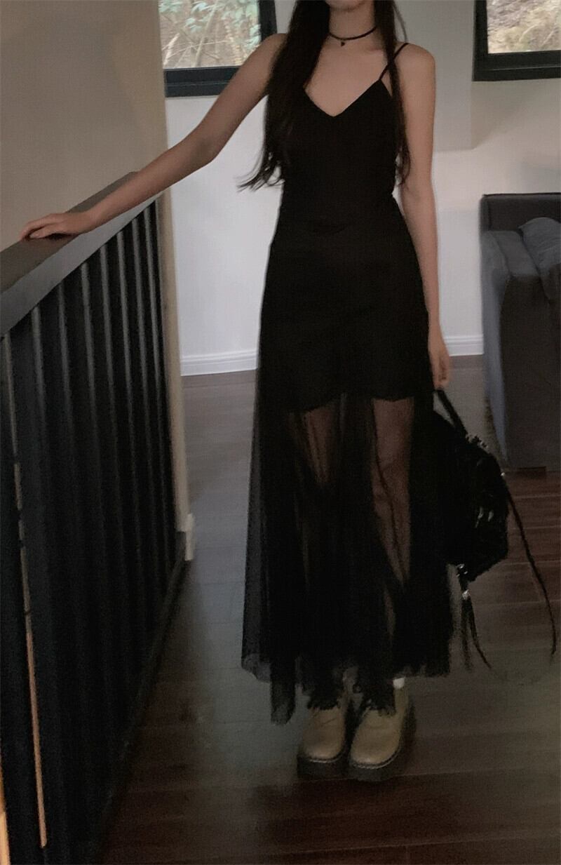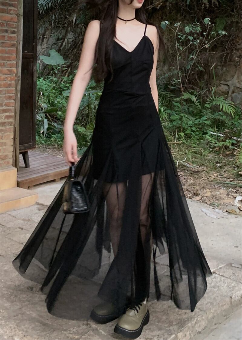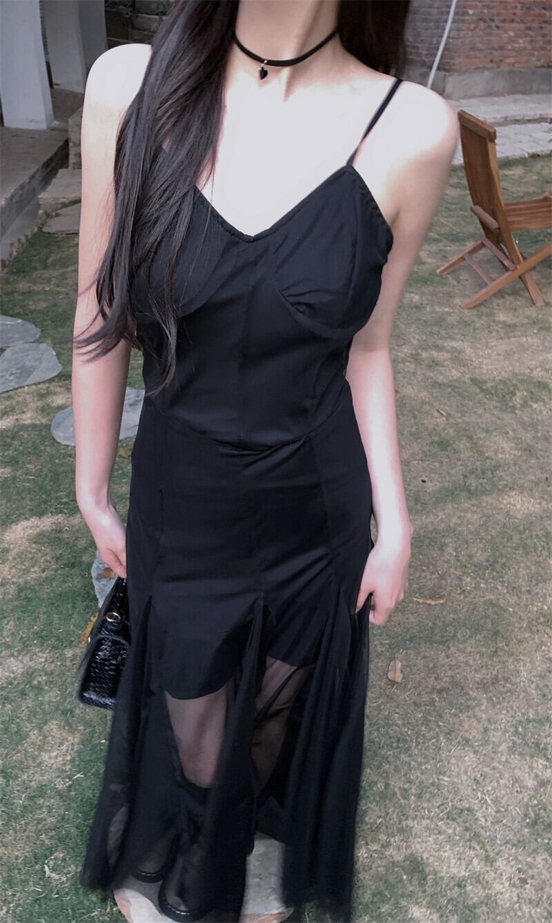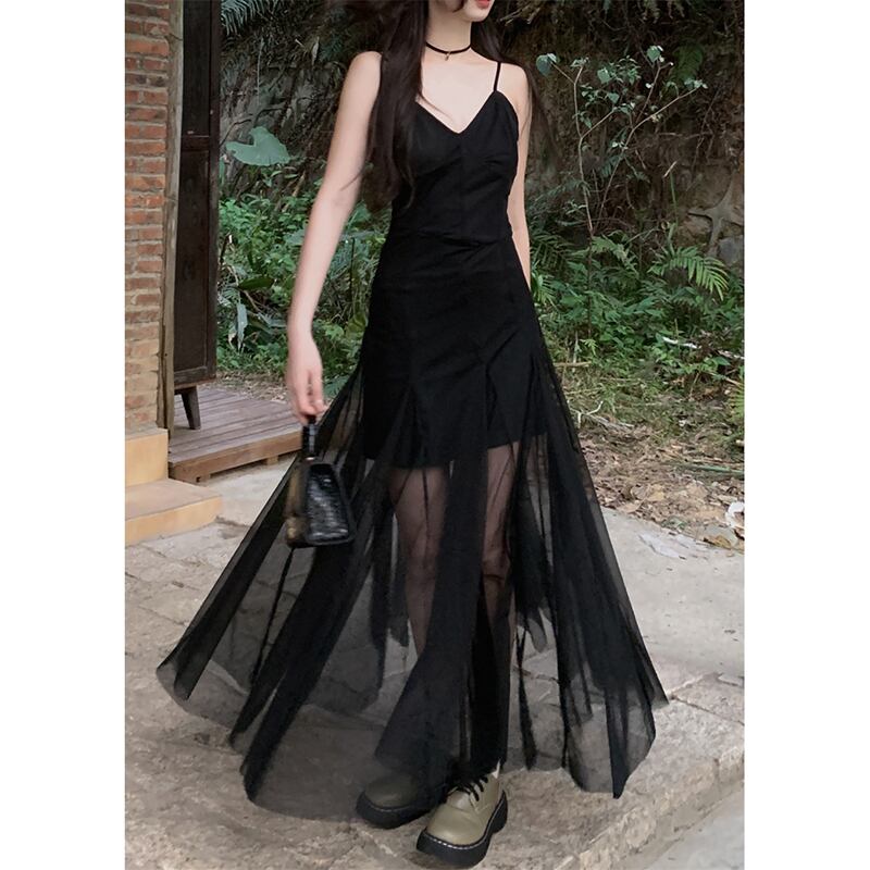 -エンドメッシュサスペンダードレスレディース2023年夏新作甘くてクールなデザイン感ウエスト痩身ロングスカート 大人ガーリー スウィート キュート カジュアル サマー 夏物 missk34178307224