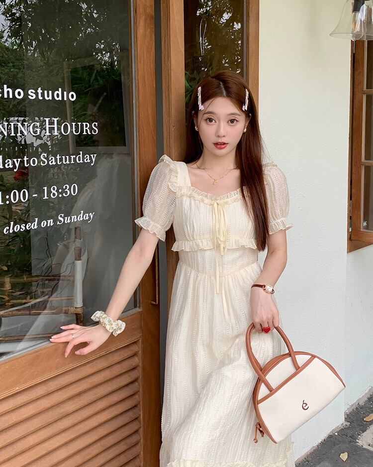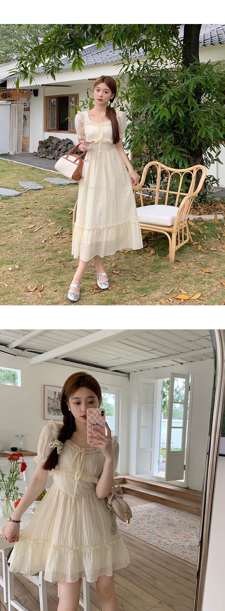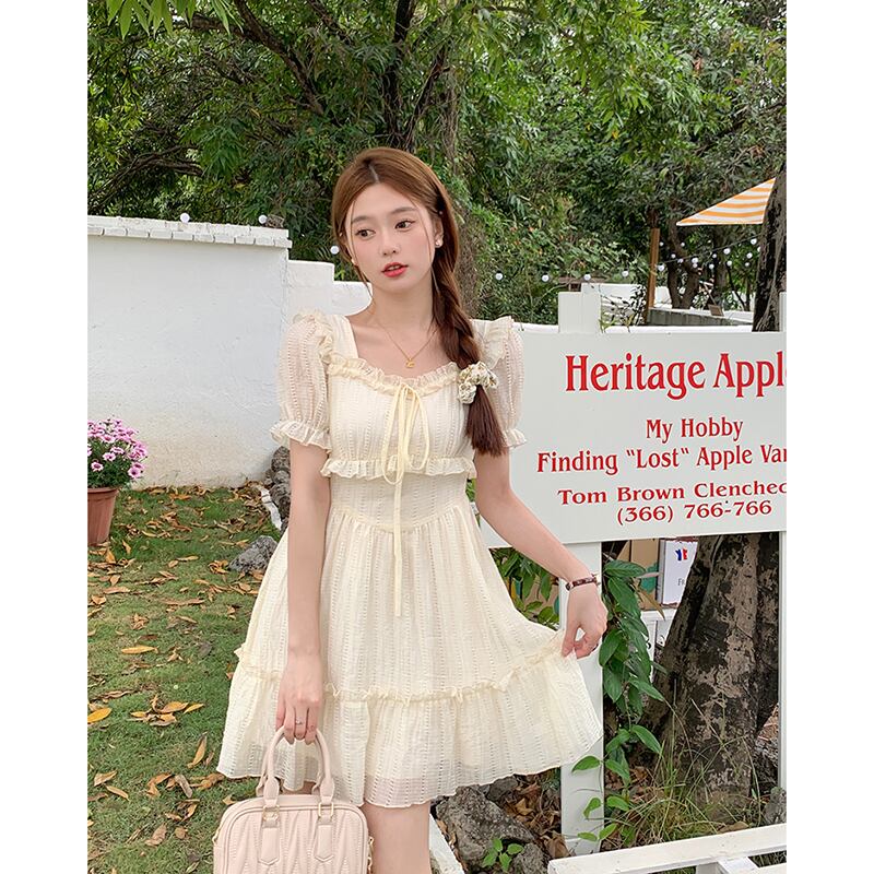 気質蓮の葉エッジ中空ネクタイドレス夏 2023 新しい優しいウエスト痩身半袖ミドル丈スカート女性 サマー 夏物 missk5729524481