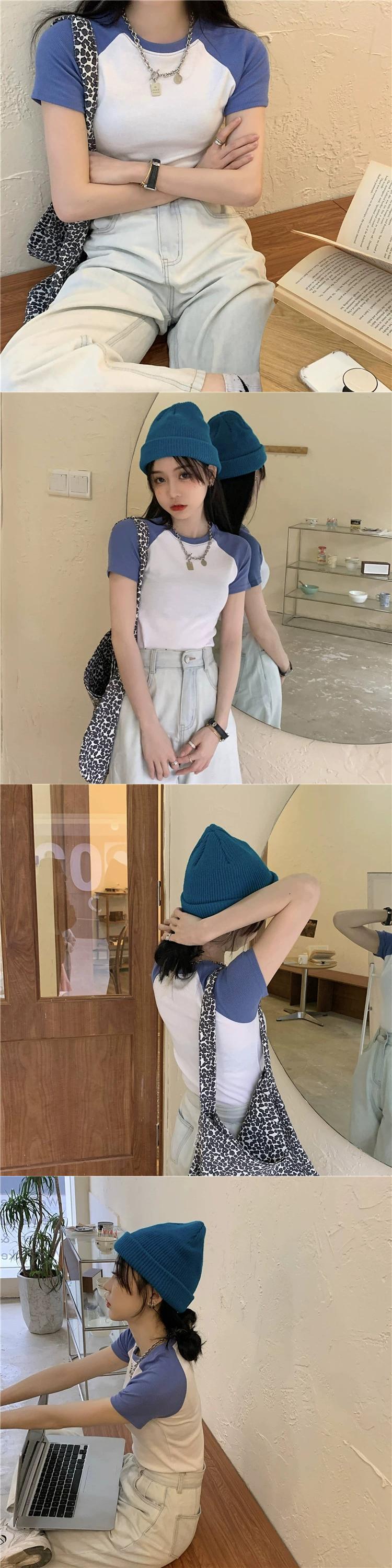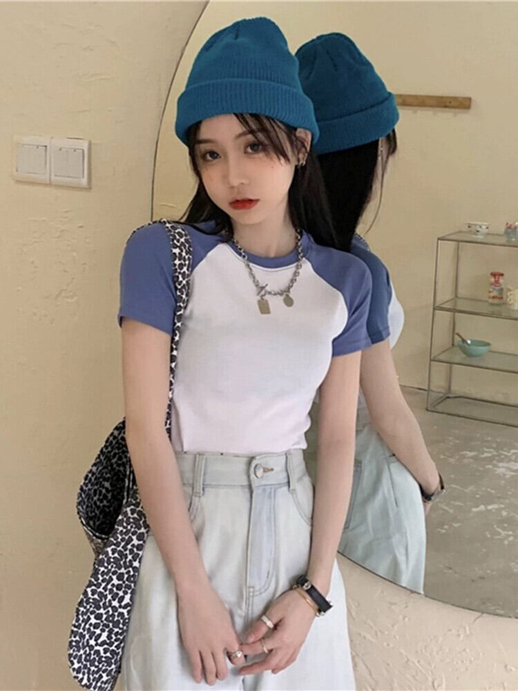 ラグランスリーブ Tシャツ レディース 夏バージョン 2023 新糸カラーコントラスト スリム スリム ショート ラウンドネック 半袖 トップス サマー 夏物 Oネック missk32540546883