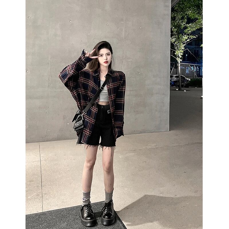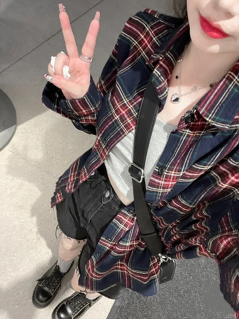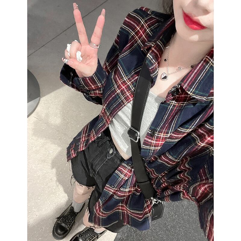 レトロチェック柄シャツ女性の夏の 2023 新しい BF スタイルルーズミッドレングス高品質長袖日焼け止めカーディガン ロング サマー 夏物 missk37068355938