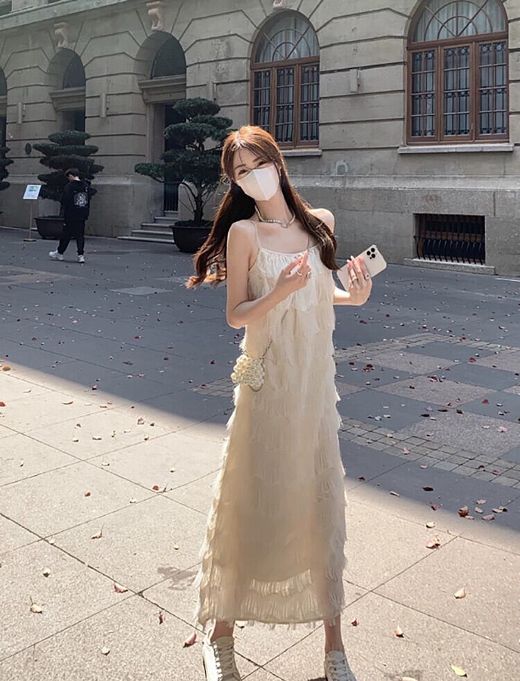 小さな新鮮なテルサスペンダードレスの女性の夏の 2023 新しいデザインセンス薄い気質スーパー妖精膝丈ドレス サマー 夏物 missk45286685295