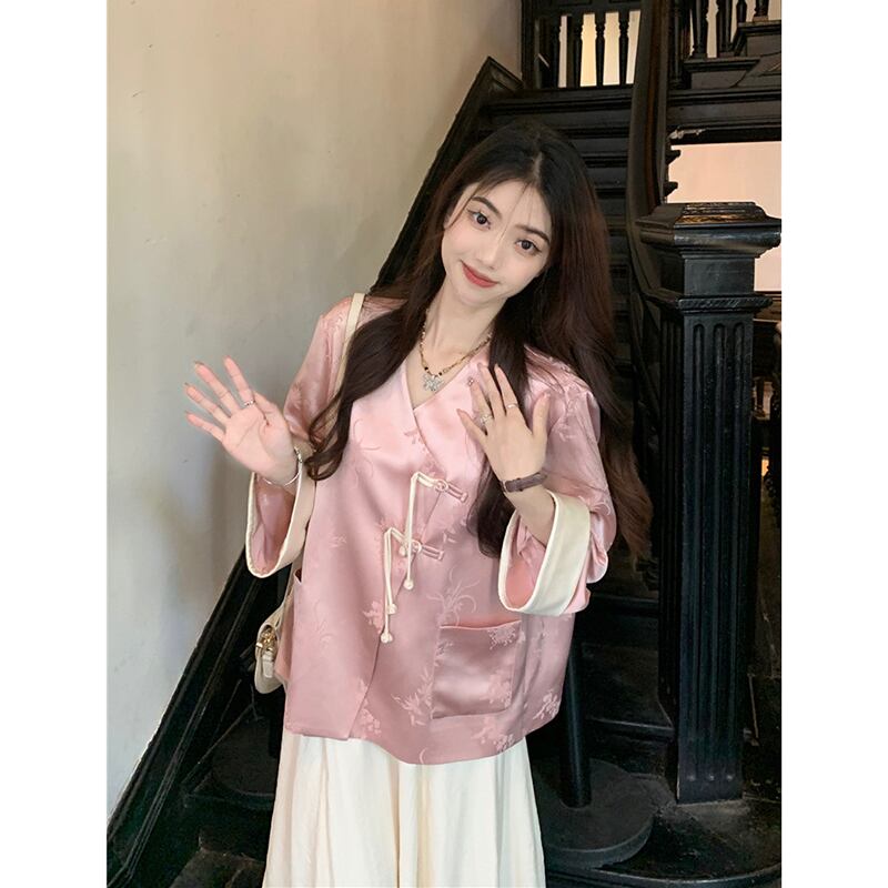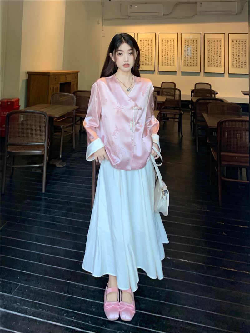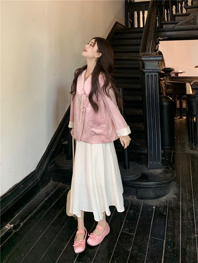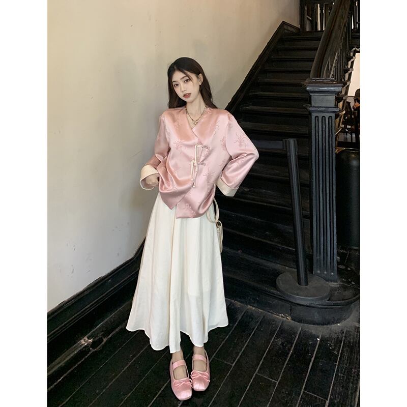 中国風の高級サテン長袖漢服ジャケットミドル丈スカート女性の2023年の夏の新しい2点セット ロング サマー 夏物 missk17530071000