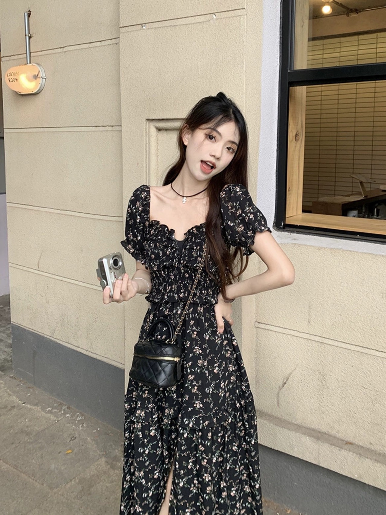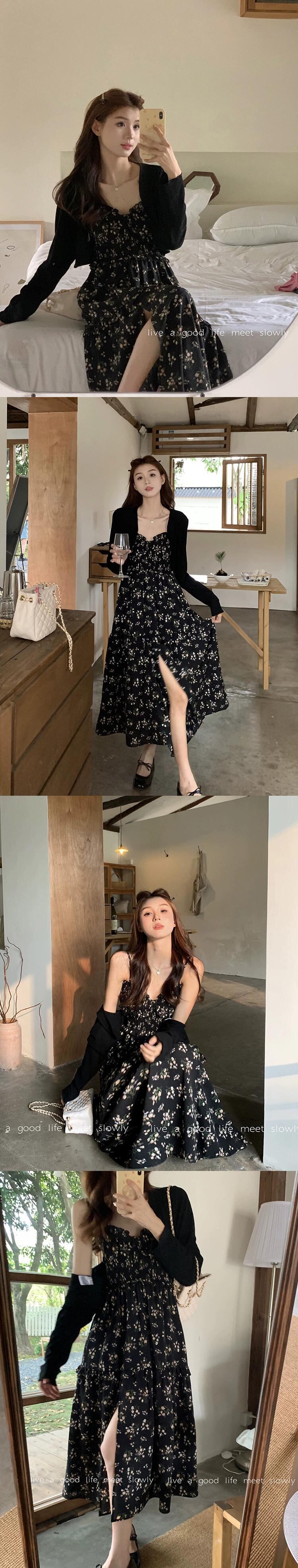 色:ブラックフローラルスリングバージョン,黒の花柄半袖バージョン,ブラックサンプロテクションカーディガン