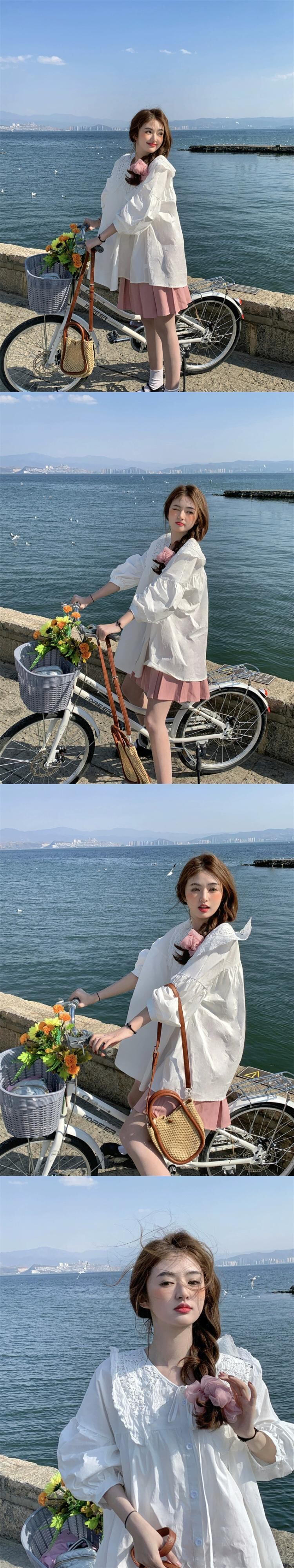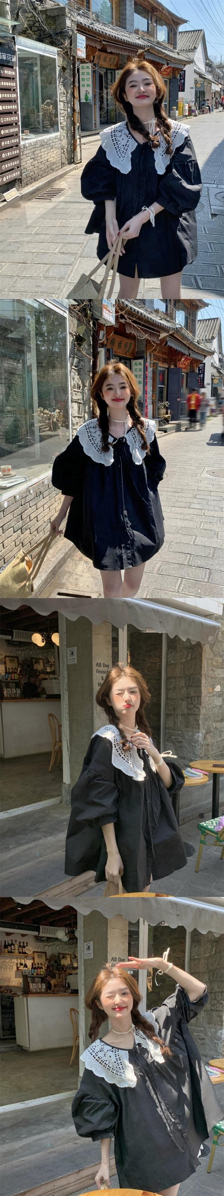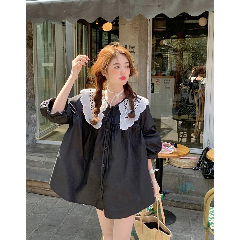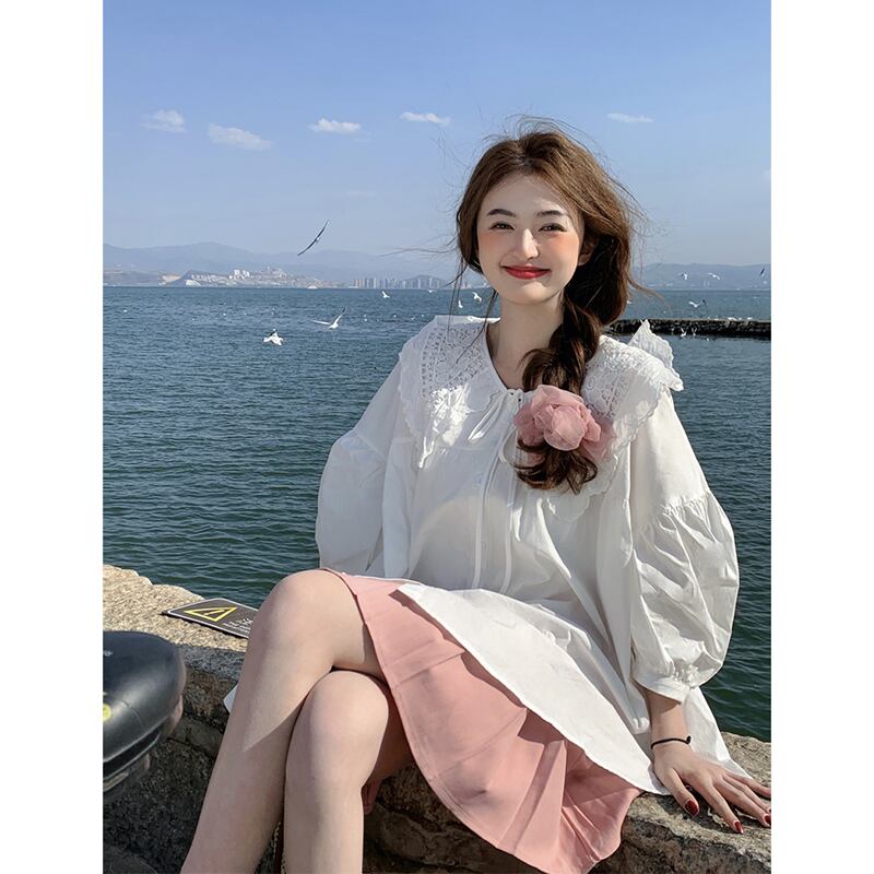 ドールカラーシャツレディース2023年夏新作甘いネクタイデザイン感ゆったりミドル丈ランタンスリーブトップ 大人ガーリー スウィート キュート カジュアル サマー 夏物 missk78166713278