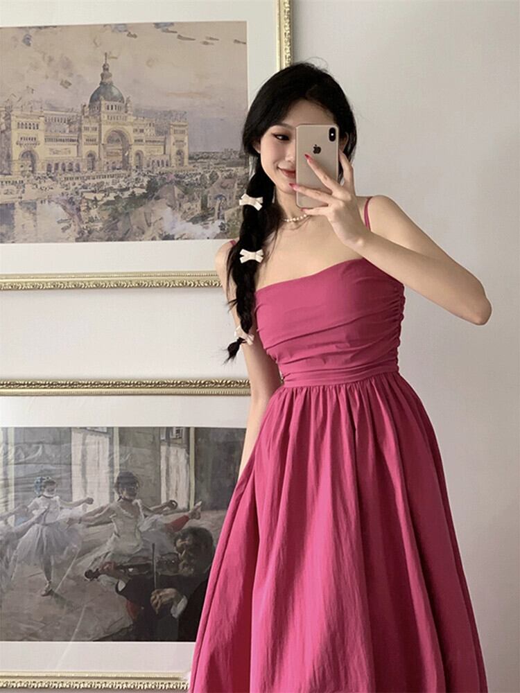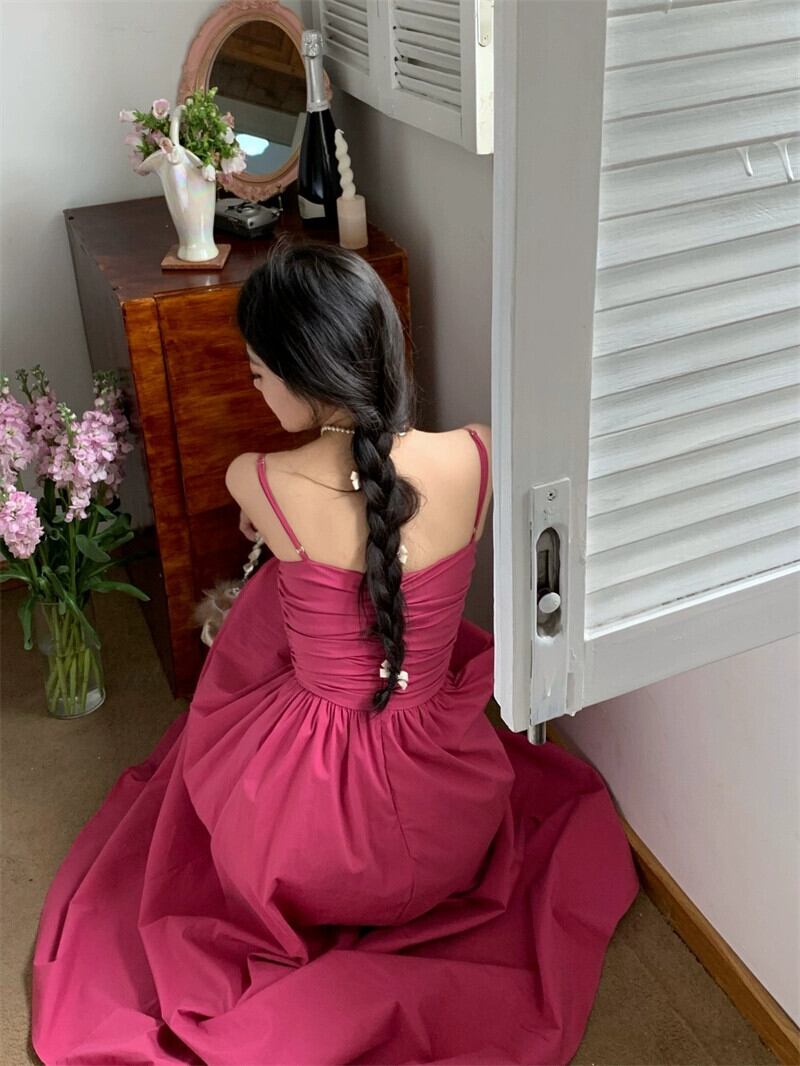 気質ローズレッドチューブトップドレス夏の新しいドーパミン着用ビッグスイングウエストサスペンダードレス女性のファッション サマー 夏物 missk38663436559