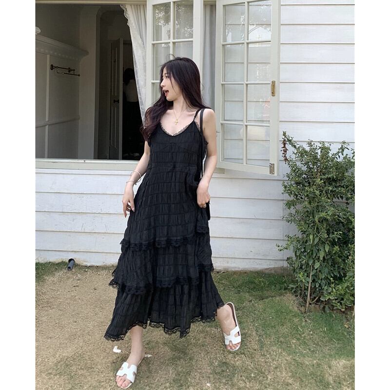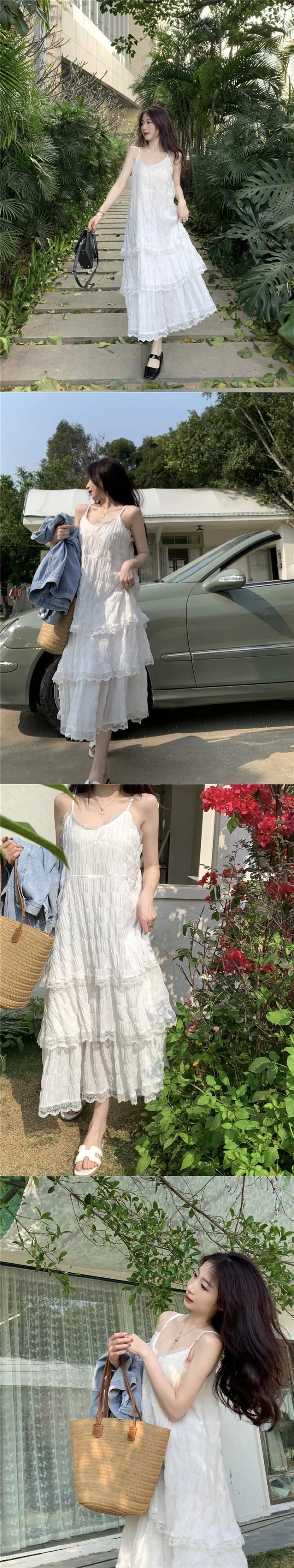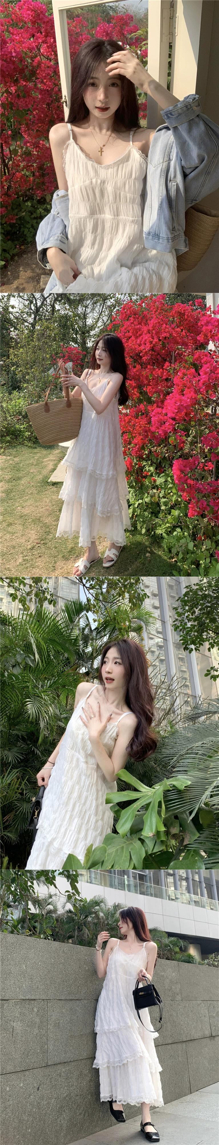 とても妖精のドレスの女性の 2023 夏の新しいスタイルのレースステッチミッドレングススリムケーキサスペンダースカート サマー 夏物 missk74300360758