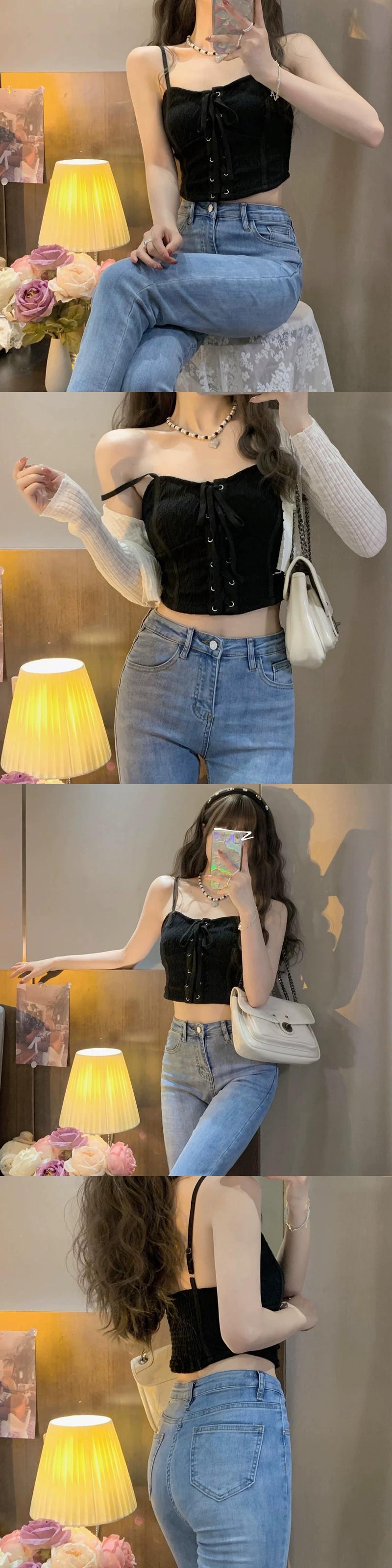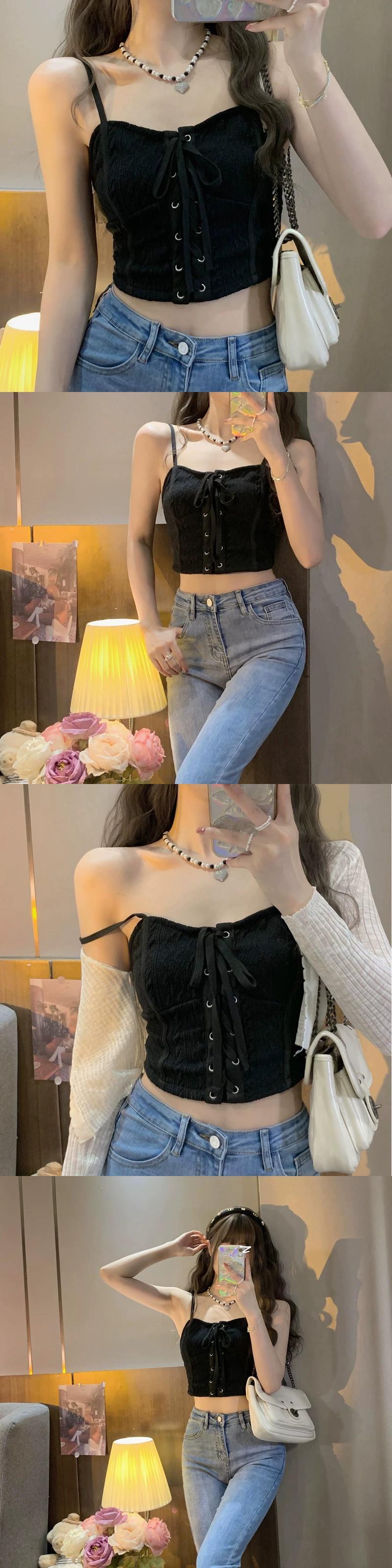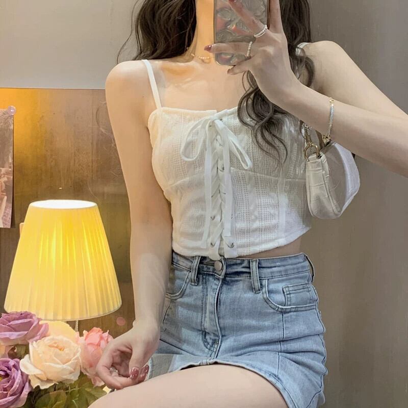 ストラップデザイン感覚ぶら下げネックアウターウェア小さなキャミソール婦人服 2023 夏の新作スリムショートトップ サマー 夏物 missk74571516833