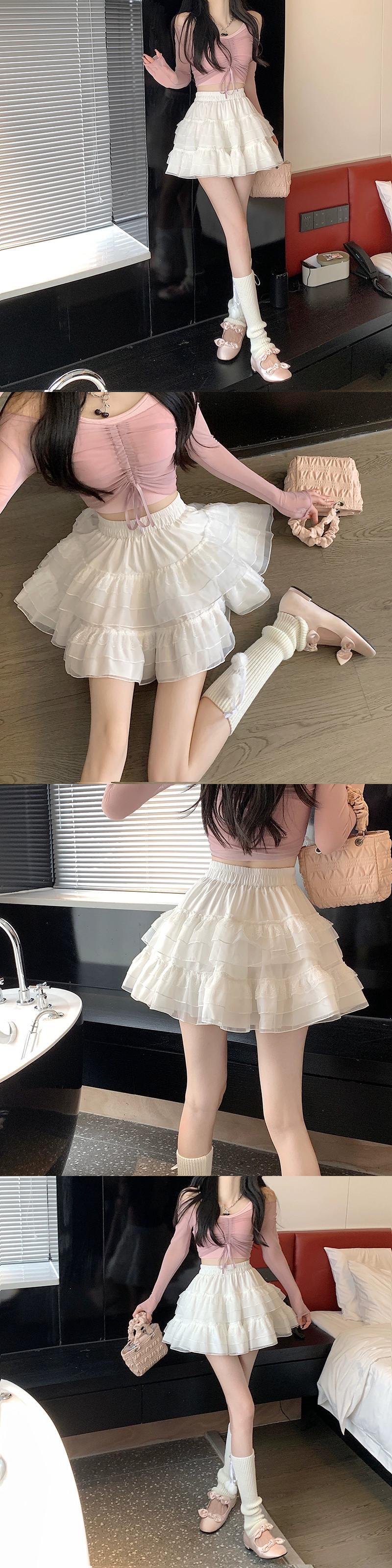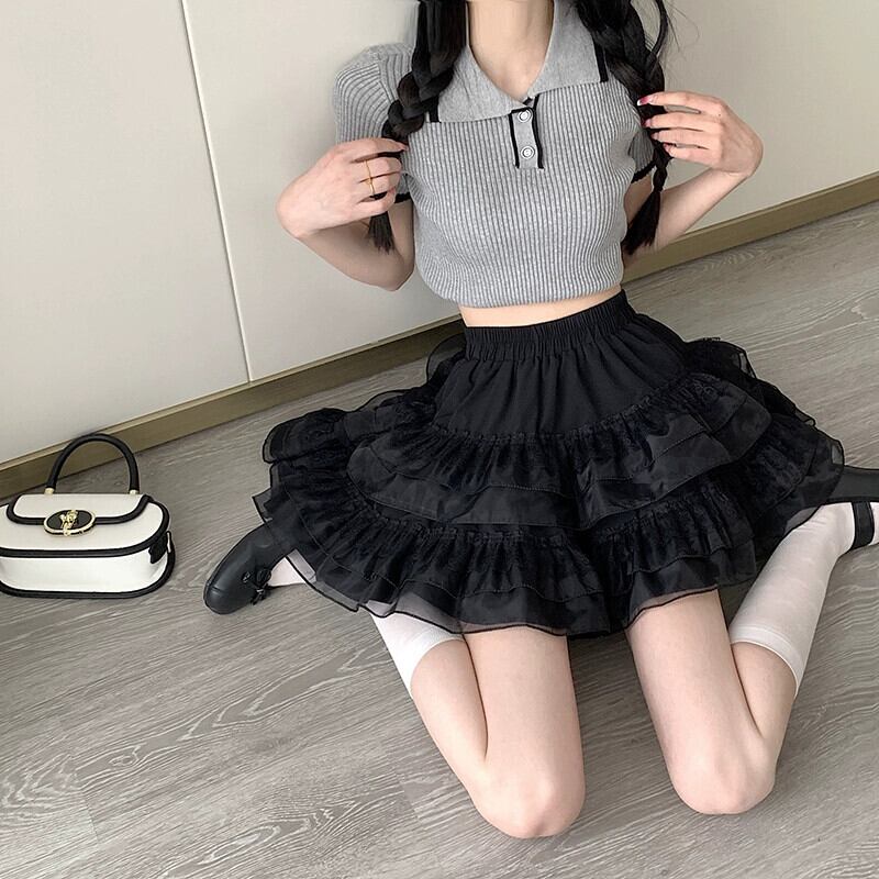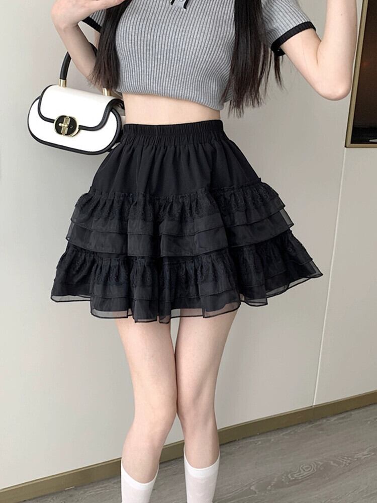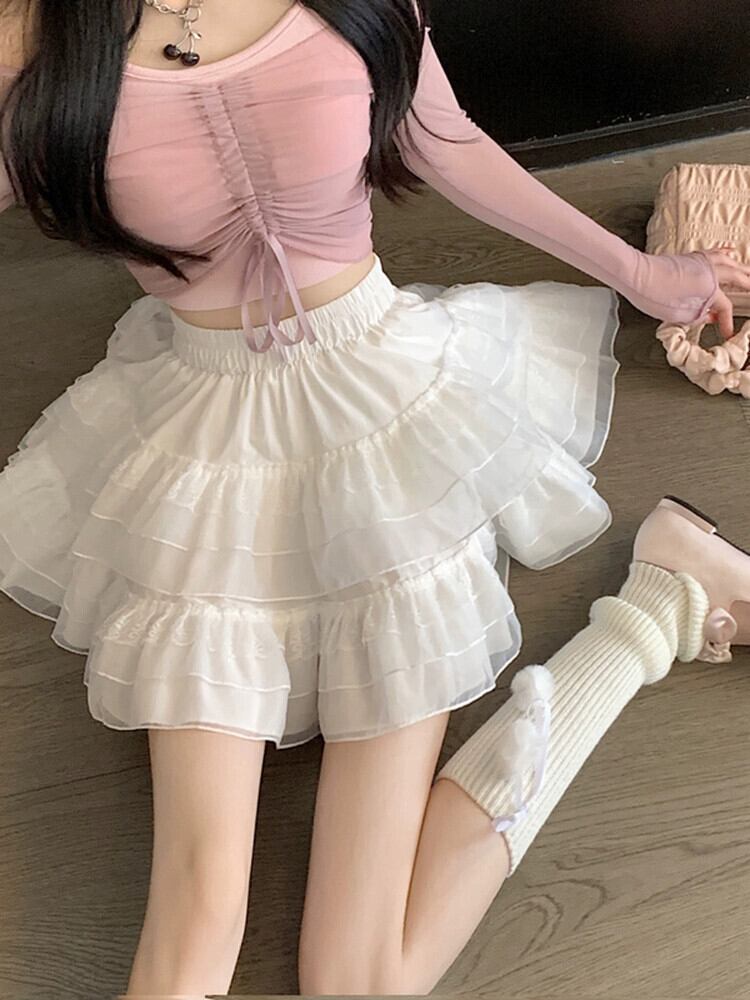 レースケーキ A ラインショートスカート夏 2023 新しいバレエスタイルハイウエスト白メッシュふわふわスカート女性 ハイウェスト ホワイト サマー 夏物 Aライン missk73898297690