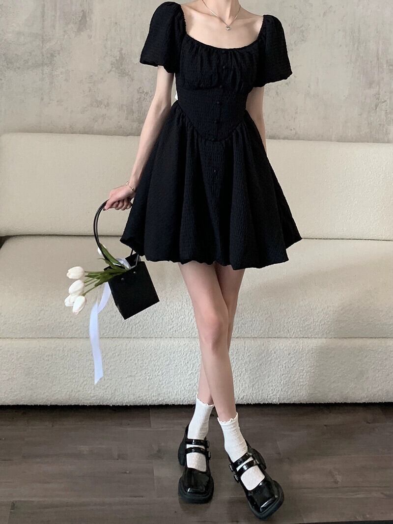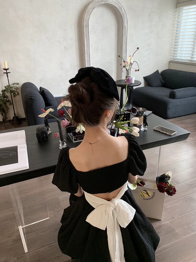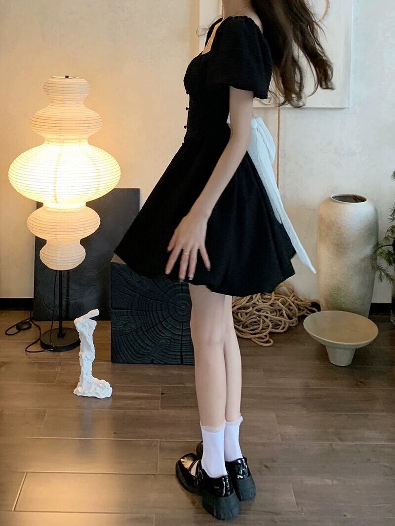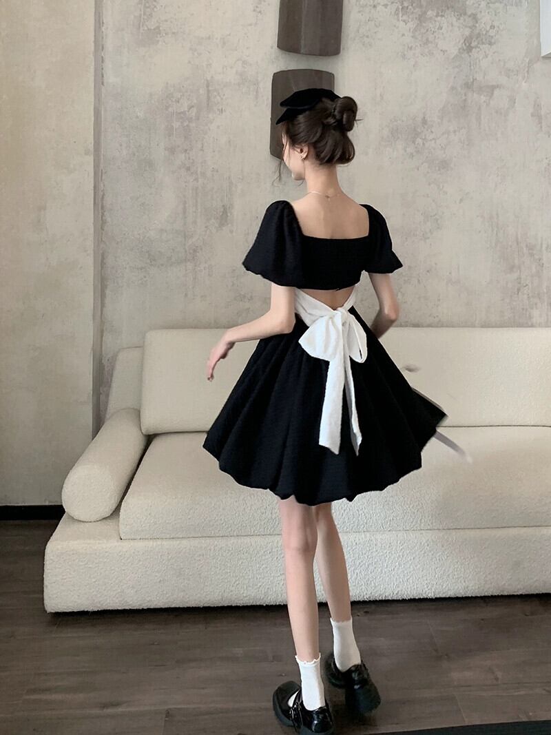 ガーリーな気質の小さな黒のドレス夏2023新しいデザインセンスネクタイリボンハイウエストスカート ハイウェスト ブラック サマー 夏物 missk30274380381