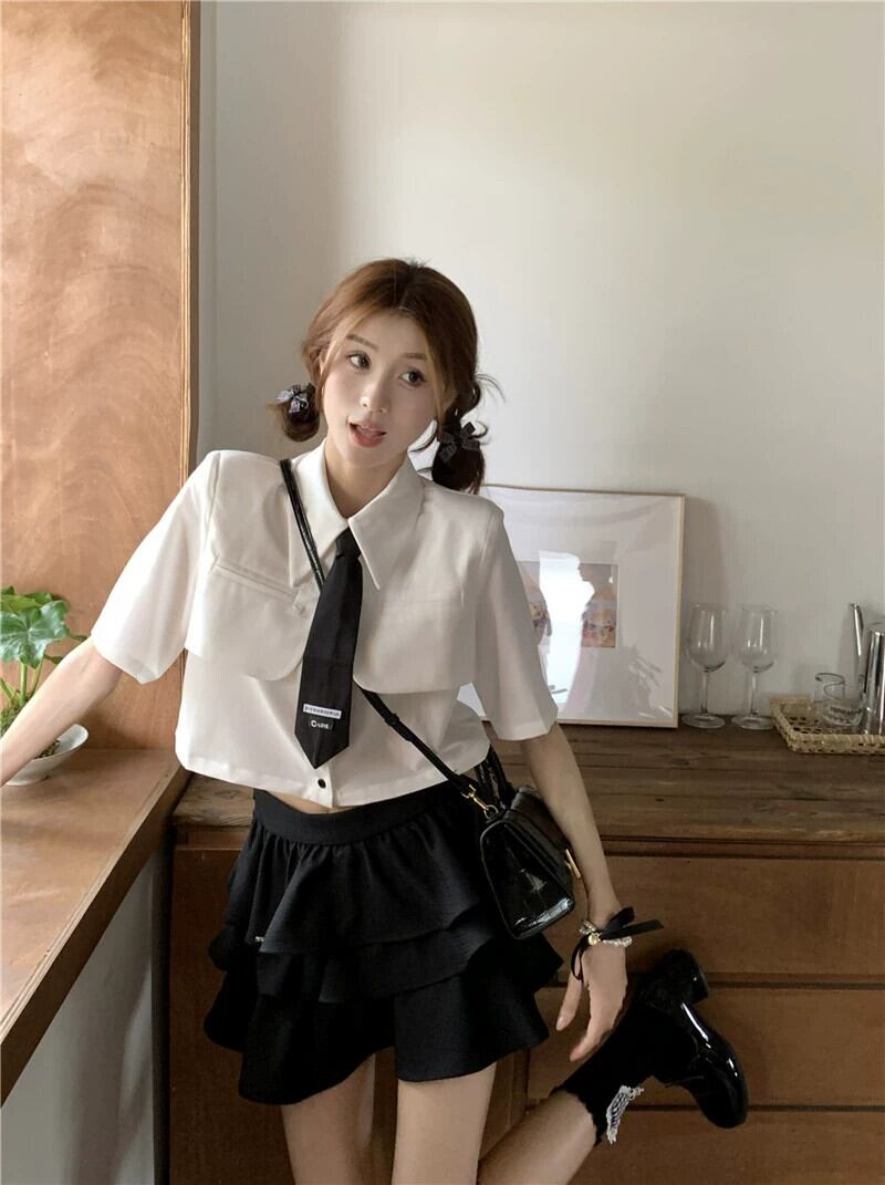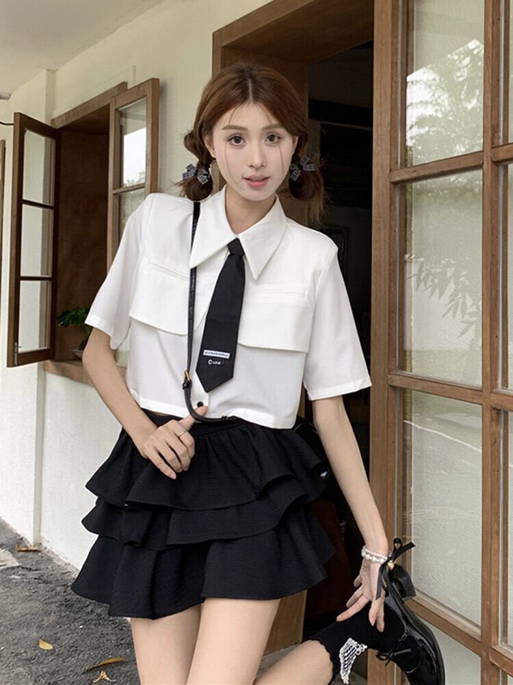 スタイルデザインセンスネクタイ半袖シャツふわふわケーキスカート女性の夏の 2023 新しいファッションスーツ サマー 夏物 missk13476046610