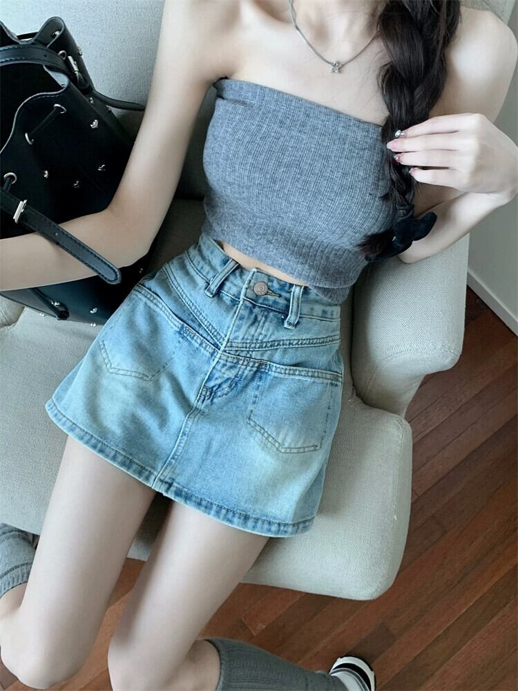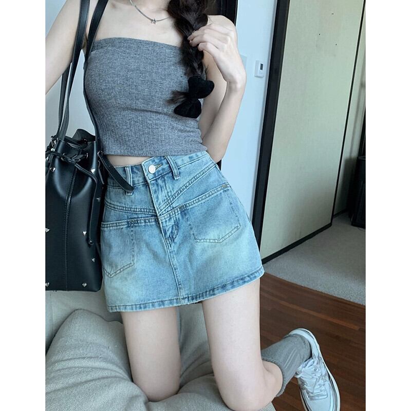 レトロデニムスカートレディース 2023 夏の新作ハイウエスト薄型デザイン感抗光 A ラインバッグヒップスカート ハイウェスト サマー 夏物 Aライン missk57592672412