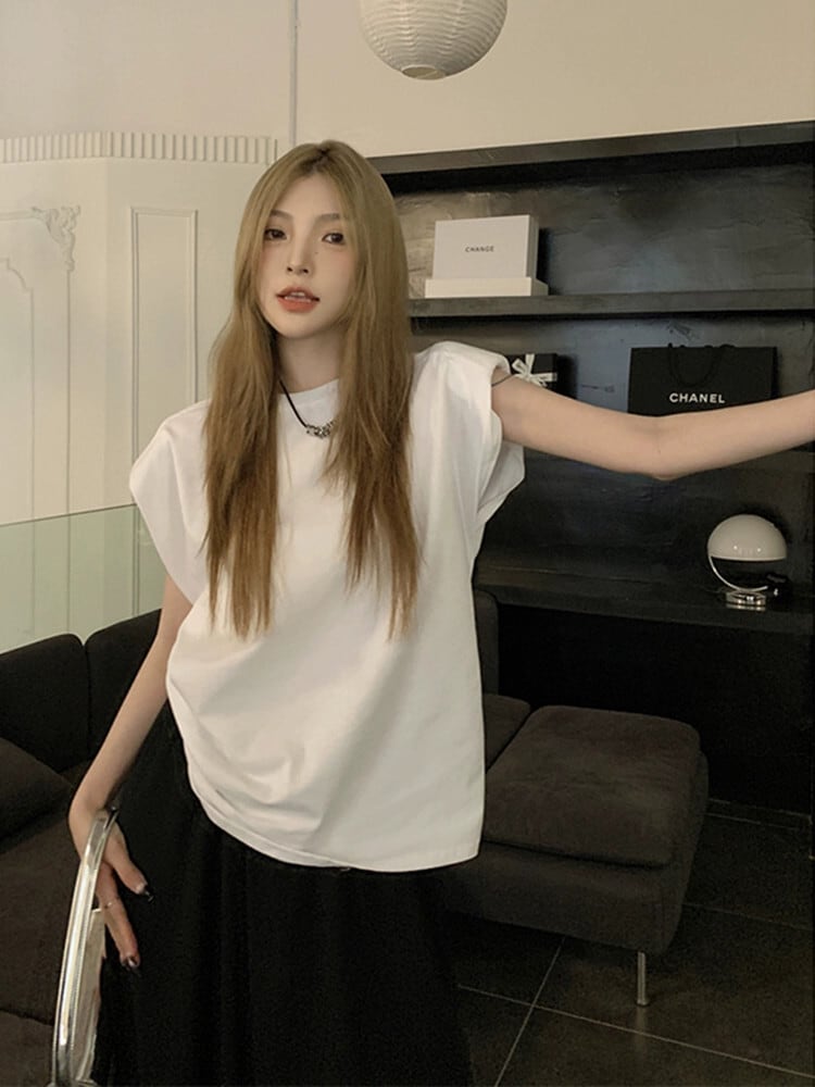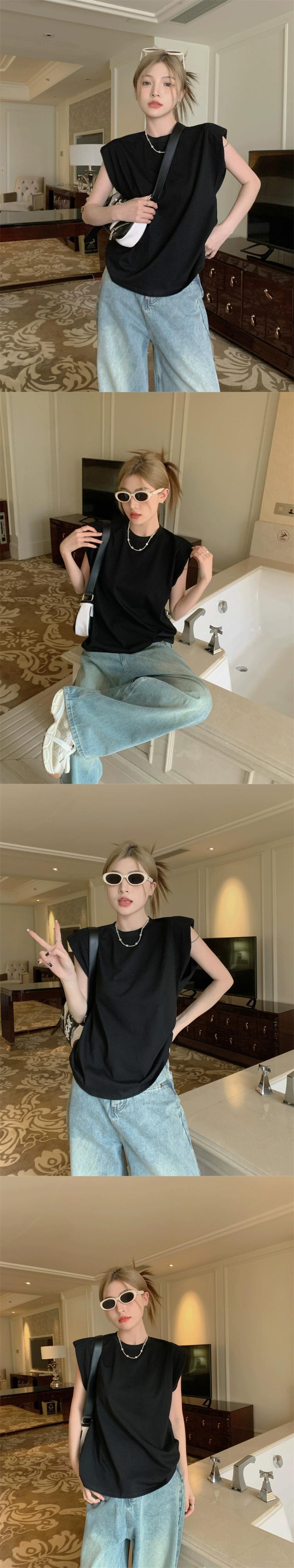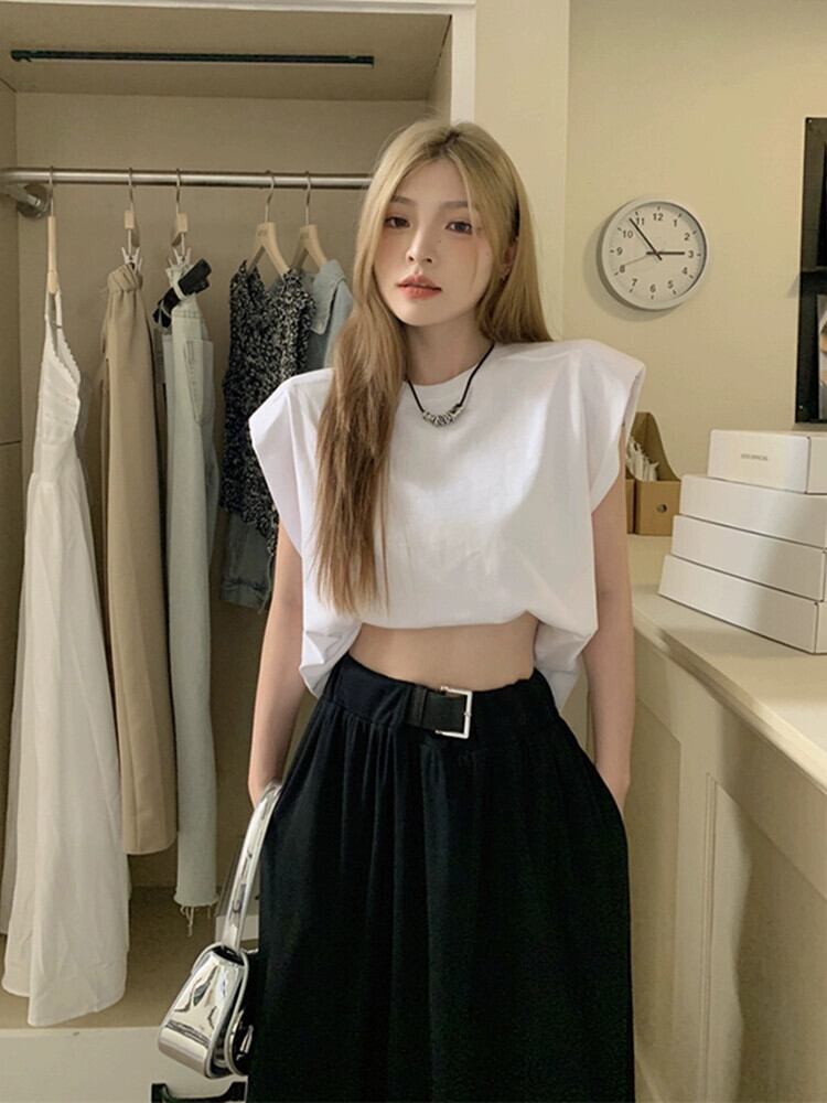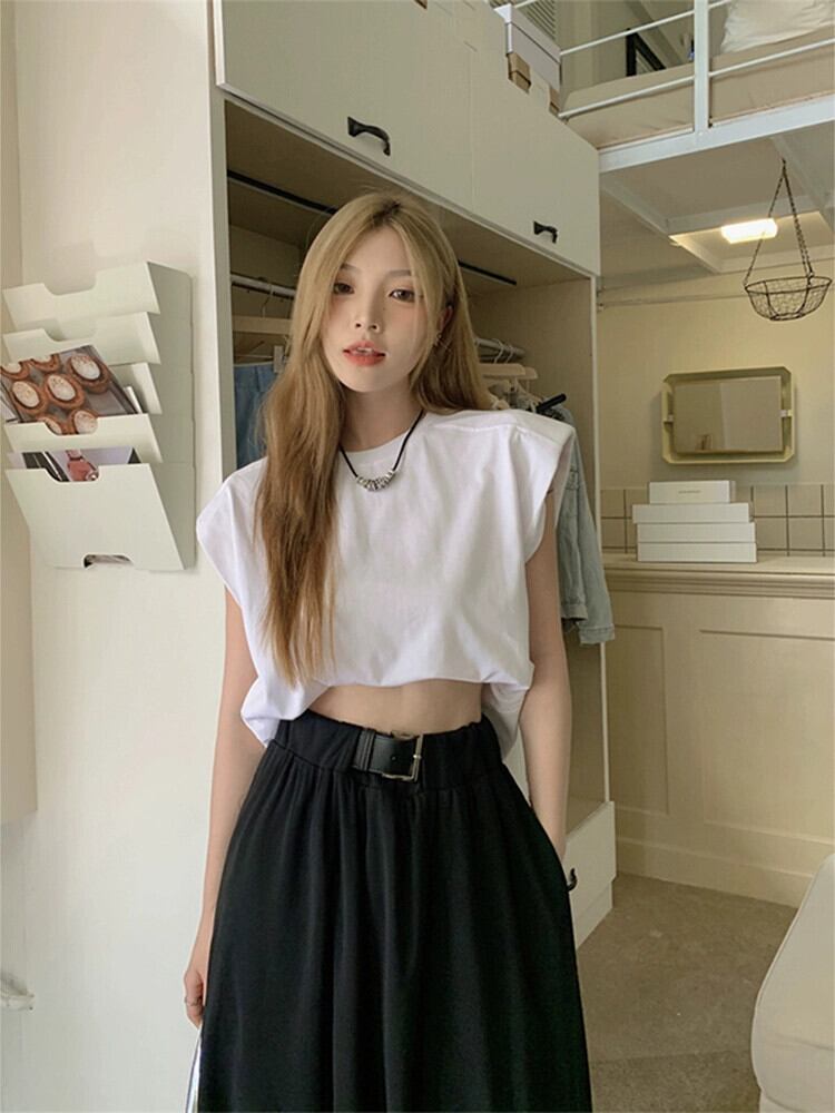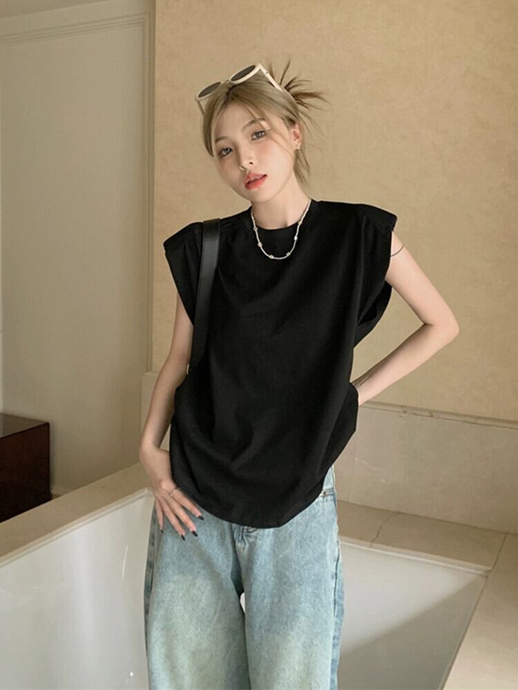 ノースリーブベスト Tシャツ女性の夏 2023 新しいレトロルーズブラックワイルドネットレッドインスーパーラウンドネックトップ サマー 夏物 Oネック missk3699070929