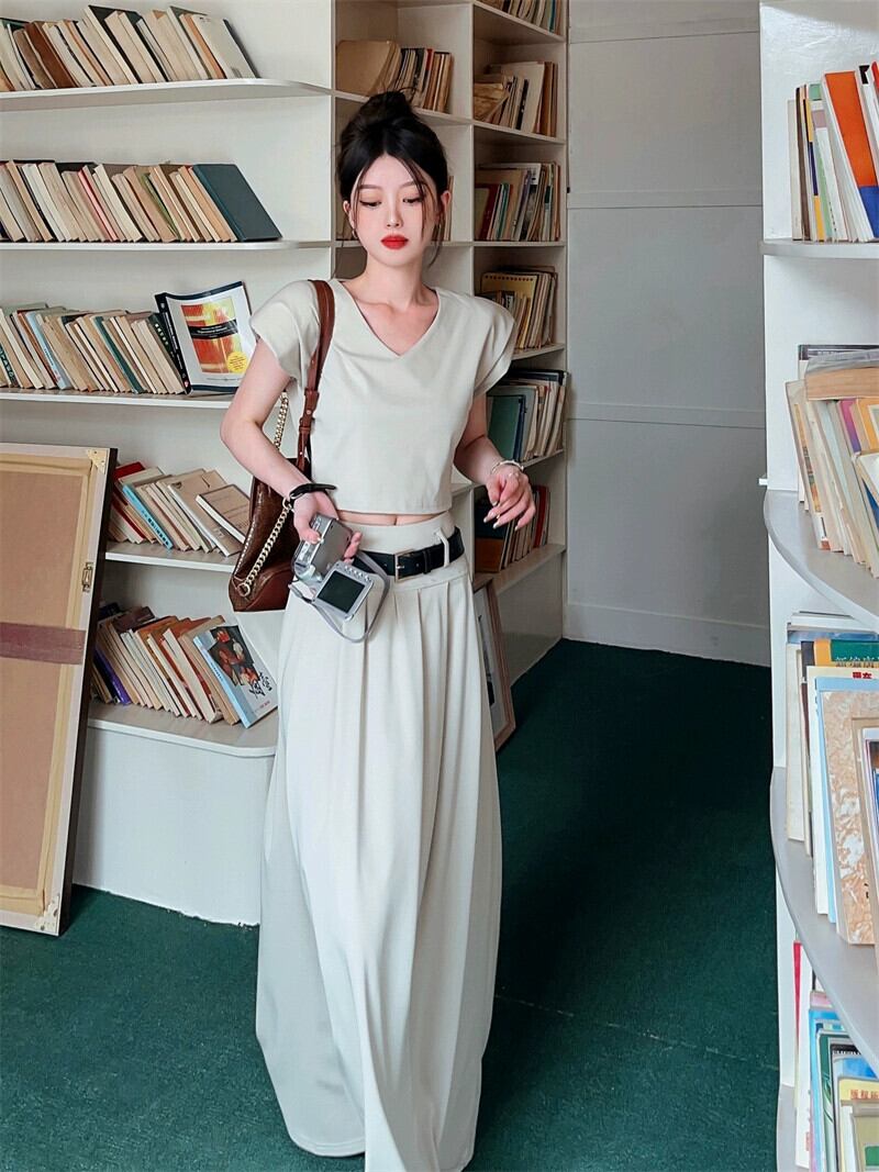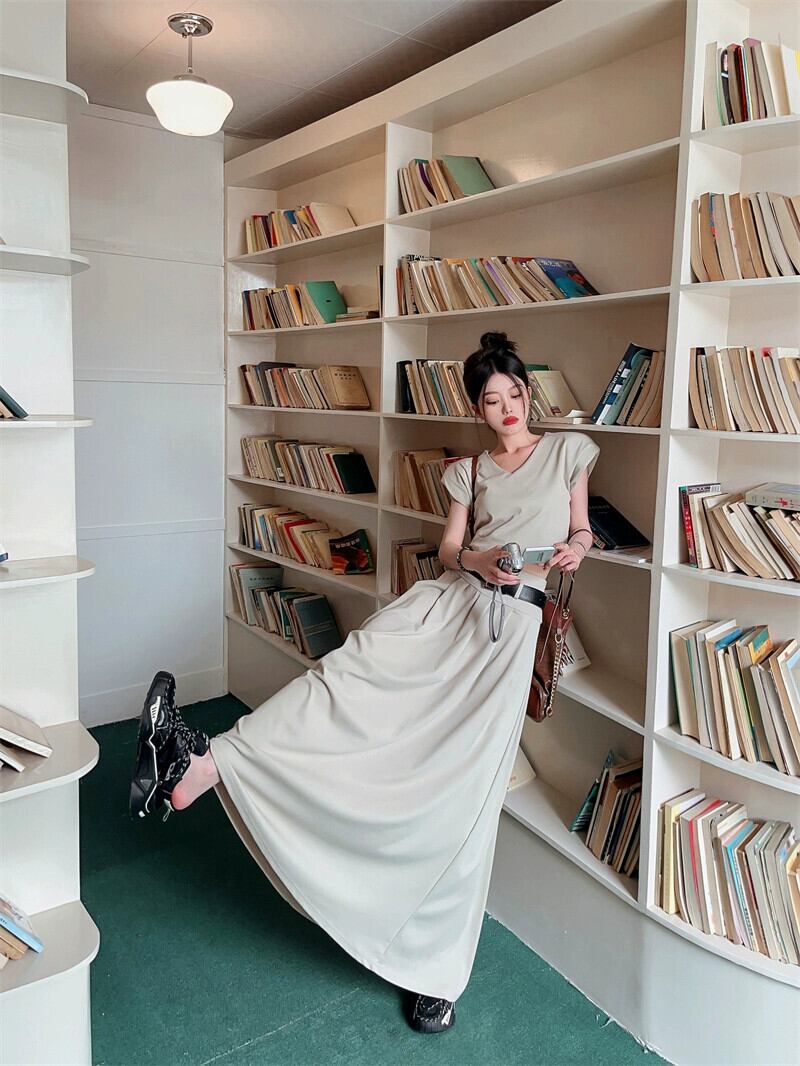 レトロ V ネックスリムスリムベストトップウエストスリムハーフレングスロングスカート 2023 夏 2 点セット サマー 夏物 Vネック missk74934040489