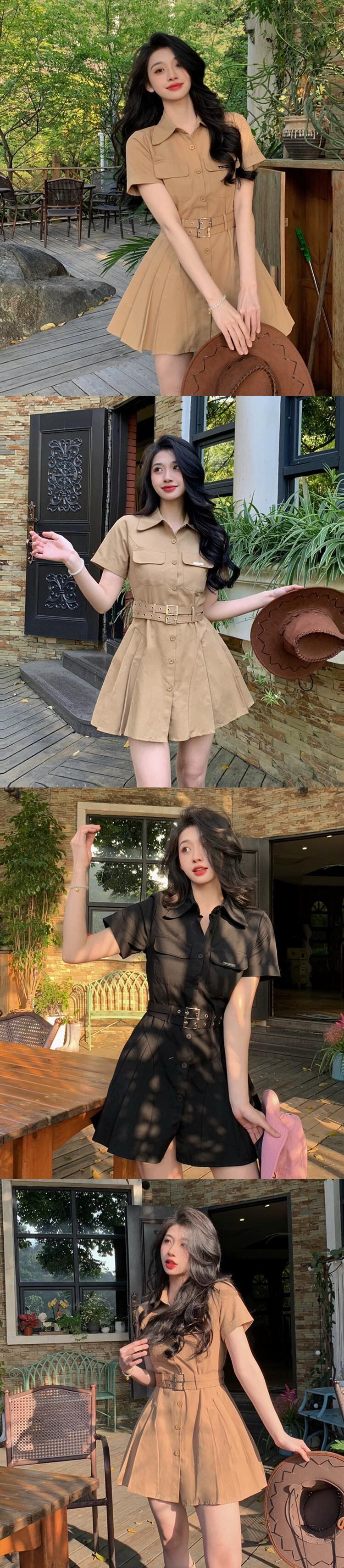 夏 2023 アメリカンスタイルのレトロな気質感覚ダブルベルトスリムスリムスリムシックな作業服ドレス サマー 夏物 ハーネス missk94424526735