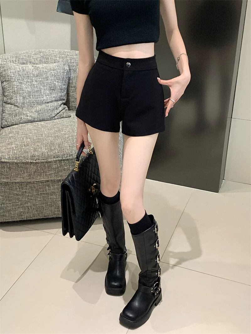 タイトな弾性レギンス女性の夏バージョン 2023 新しいハイウエスト薄い黒のアウターウェアショートパンツパンツ ハイウェスト ブラック エラスティック 伸縮 サマー 夏物 ショーツ ブルマー missk83715353753