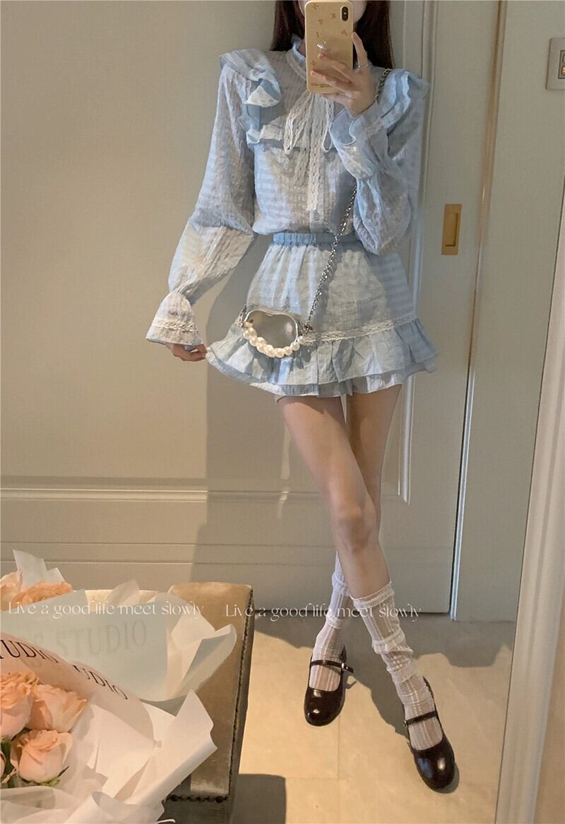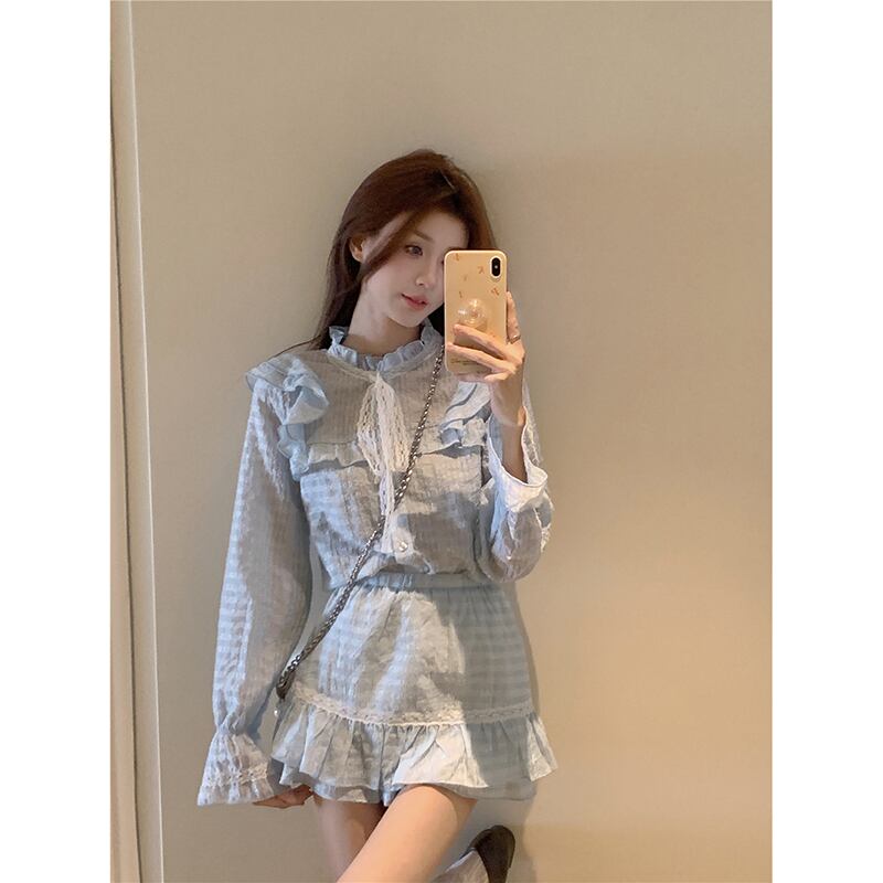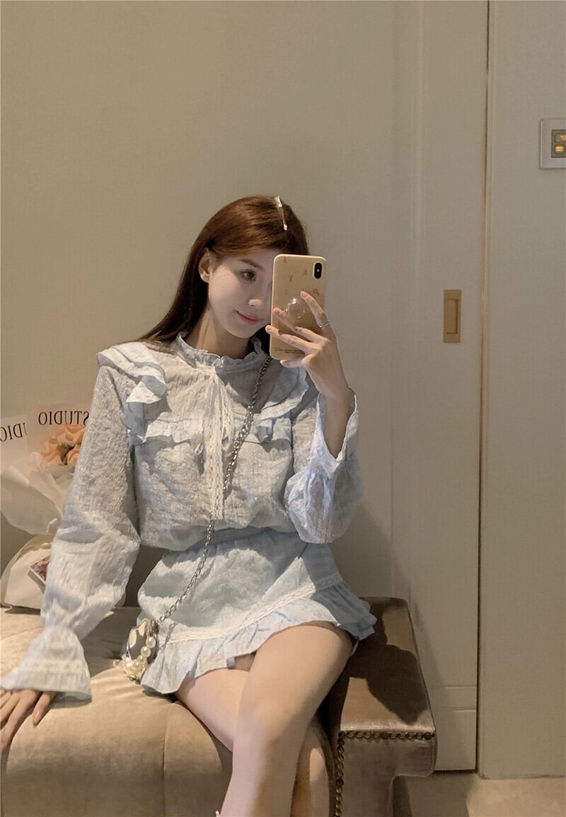 小さな香りスタイルレースステッチデザインセンス気質長袖シャツスカートスカート女性の夏の 2023 新しいツーピーススーツ ロング サマー 夏物 missk7665503352