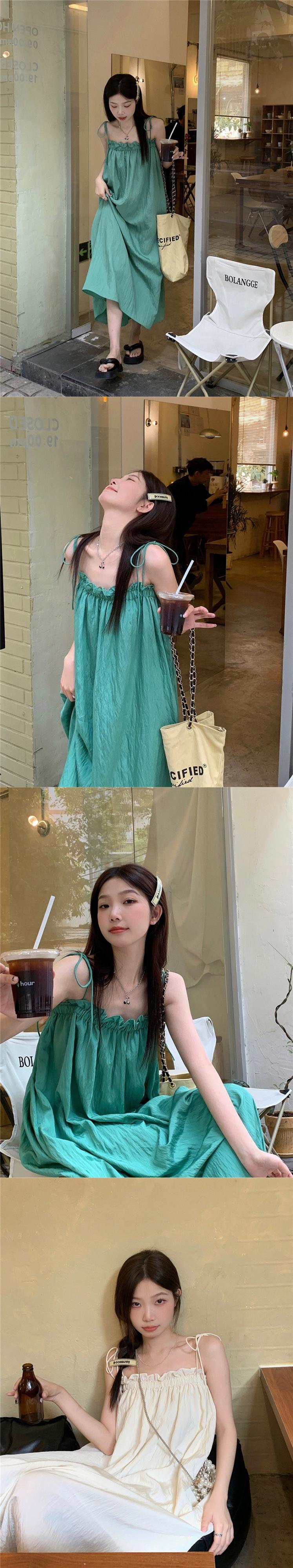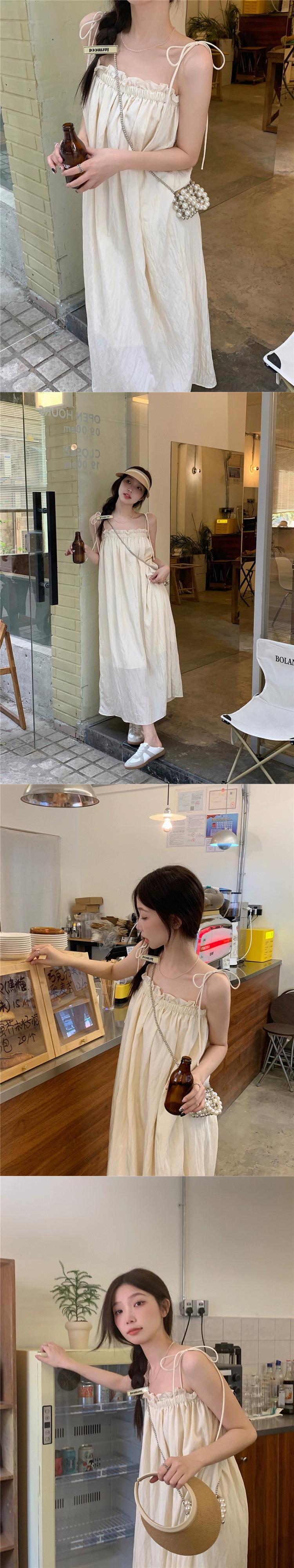 白いスリングドレスの女性の夏バージョン 2023 新しいスタイルの真菌サイド痩身ロングセクション膝上アウタースカート ホワイト サマー 夏物 missk89375363905