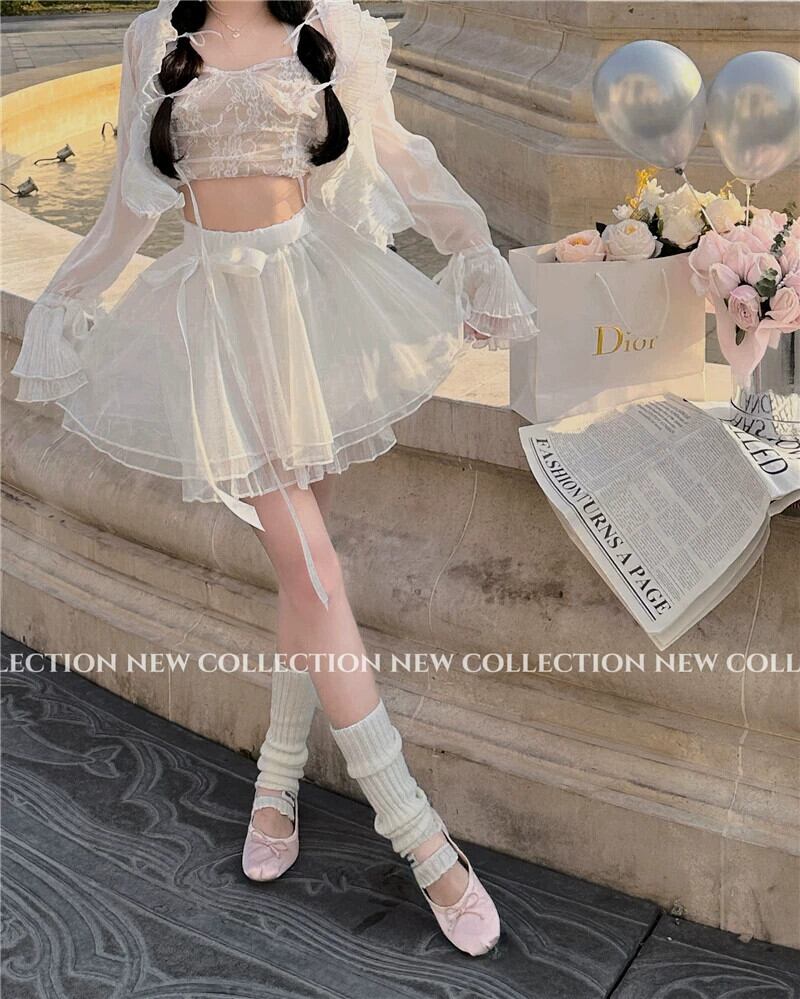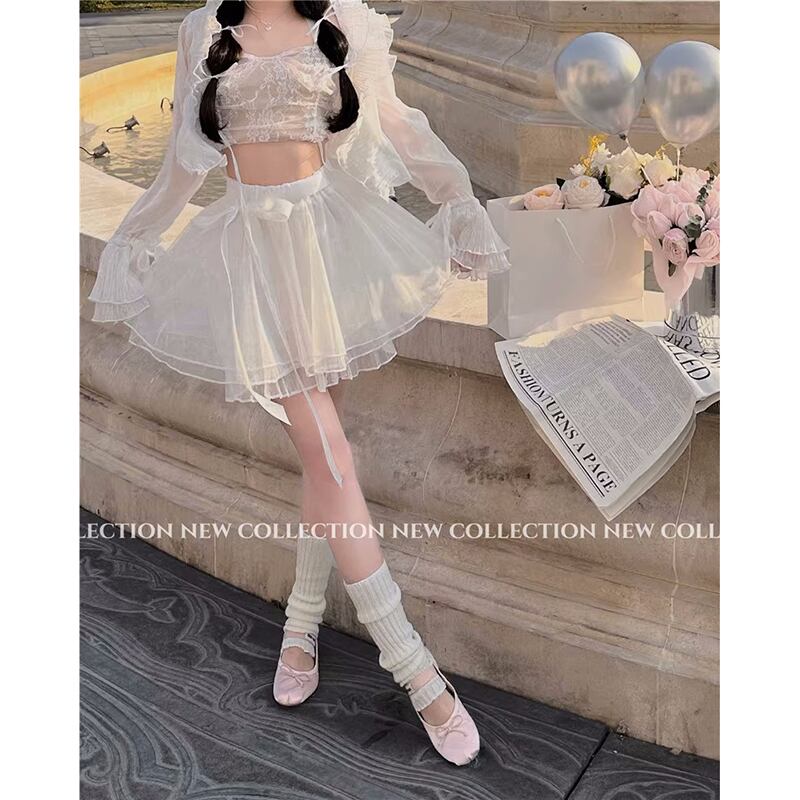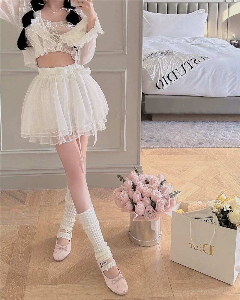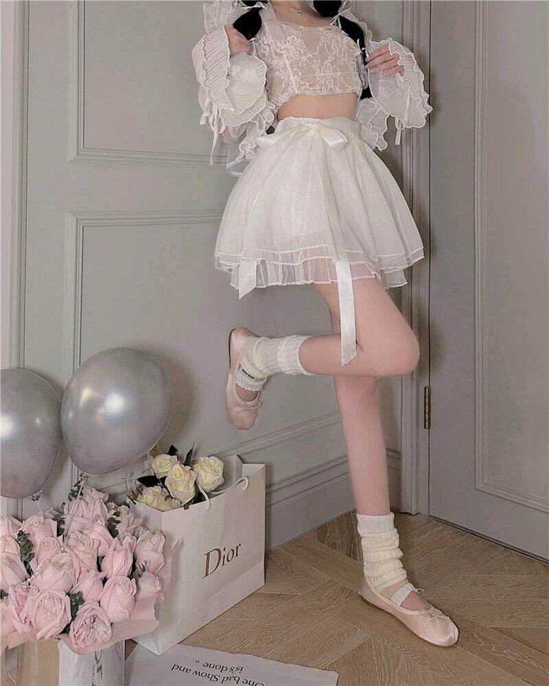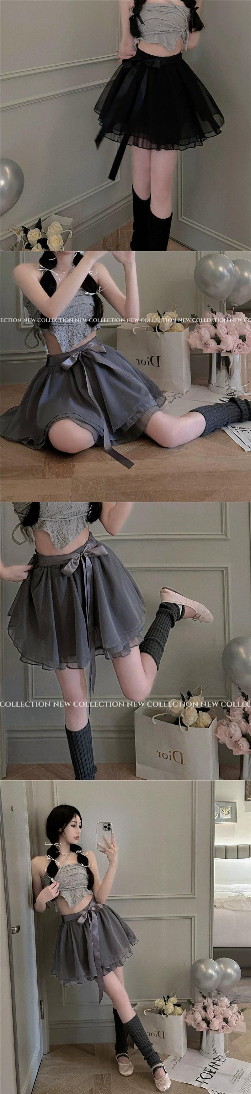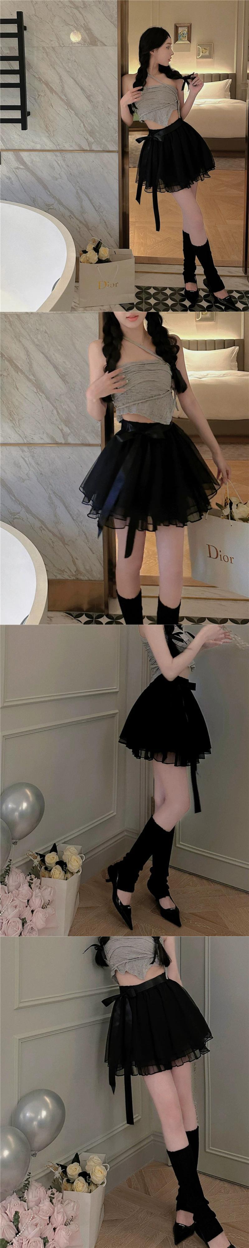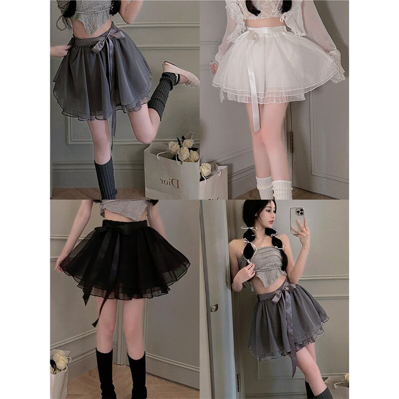 バレエスカート 2023年夏新作 ハイウエスト着痩せメッシュリボンふわふわスカート サマー 夏物 missk67799854981