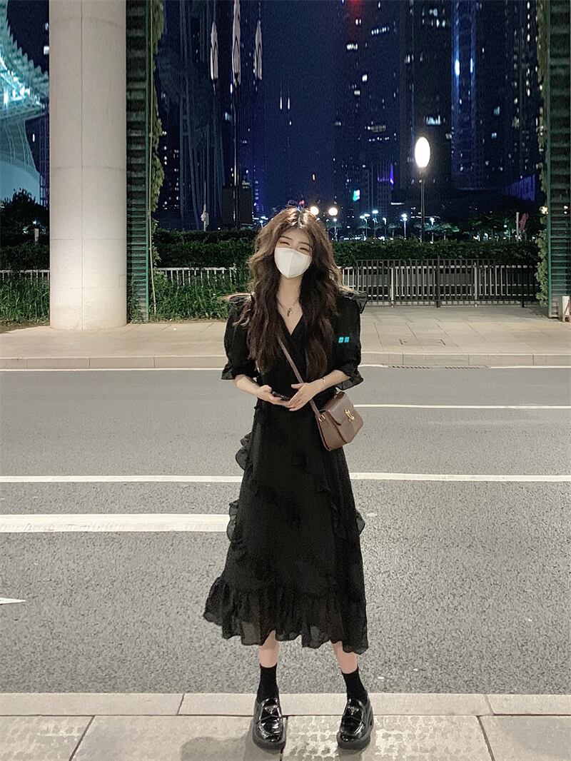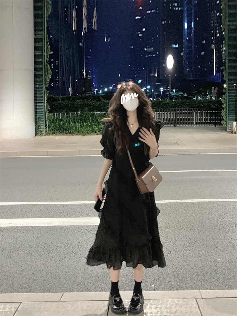 フリルドレスレディース夏バージョン2023新デザインセンスミドル丈ウエスト痩身ランタンスリーブスカート サマー 夏物 missk46294553251