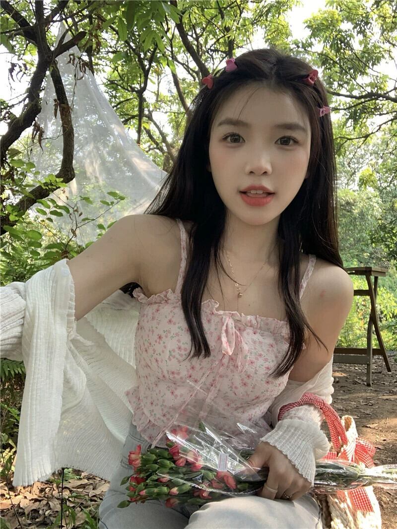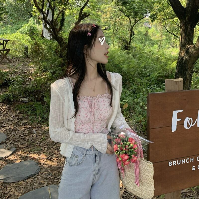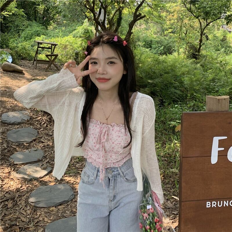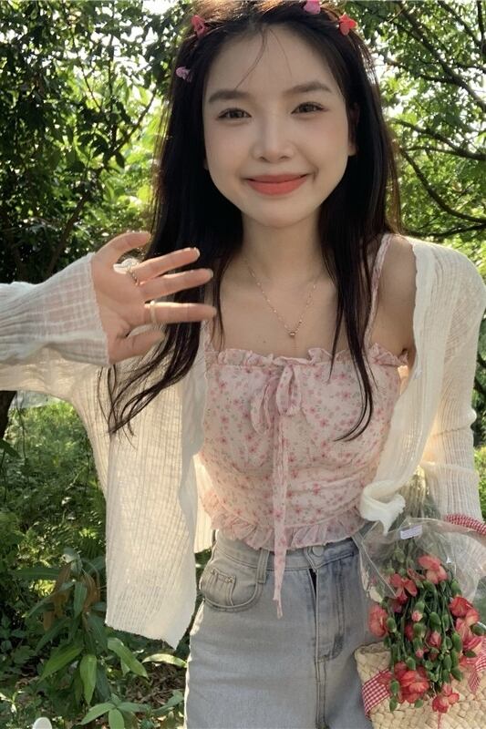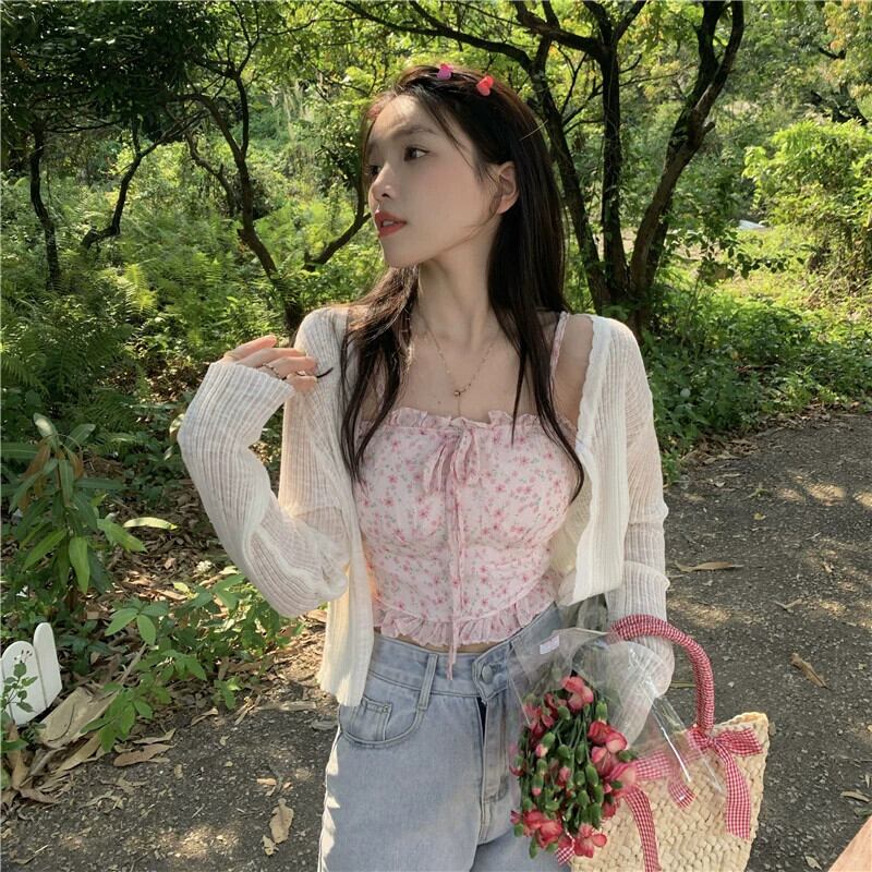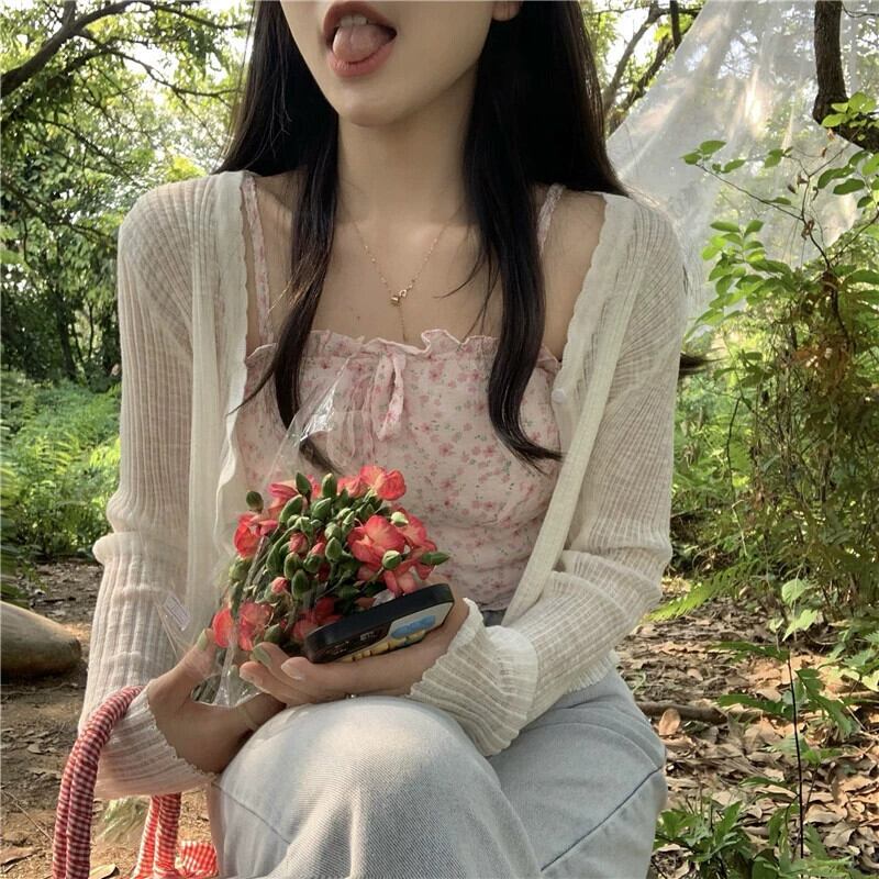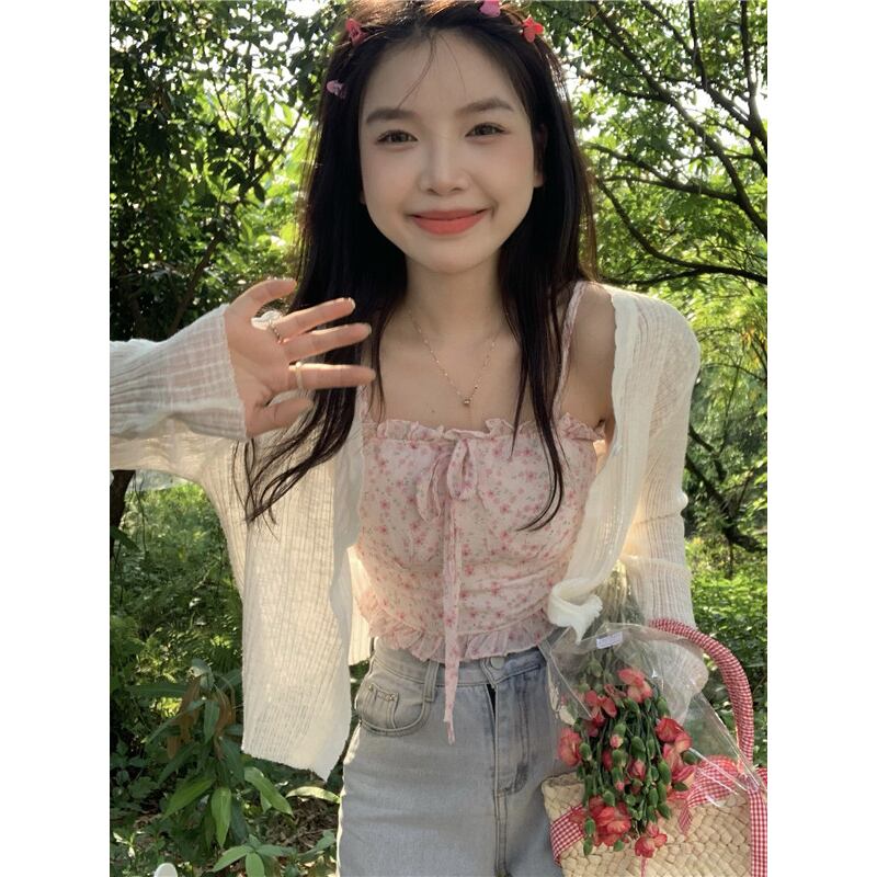 甘い花柄レースと菌サイドキャミソール薄いセクション日焼け止めセーター女性の夏の 2023 新作 2 点セット 大人ガーリー スウィート キュート カジュアル サマー 夏物 missk77874316756