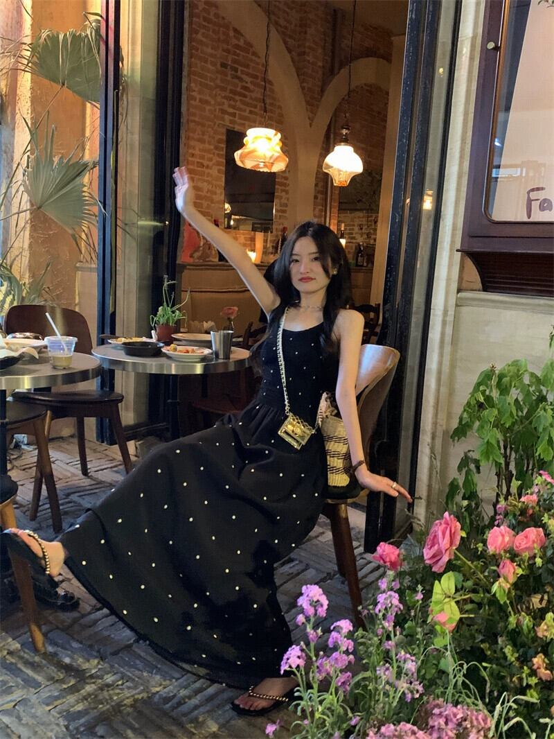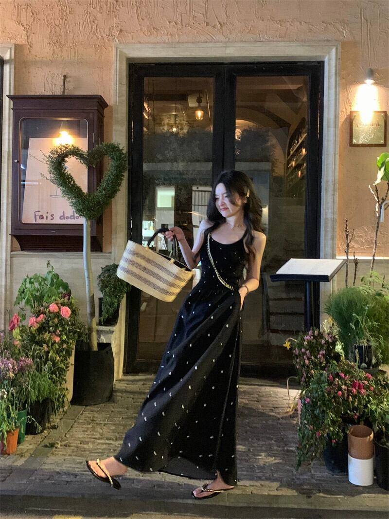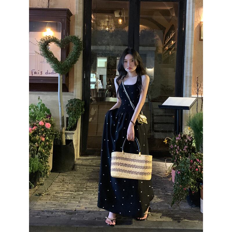 2023 夏の新デザインセンスクロスネクタイ水玉バックレスロングセクションスリムサスペンダードレス女性の潮 サマー 夏物 missk44718067374