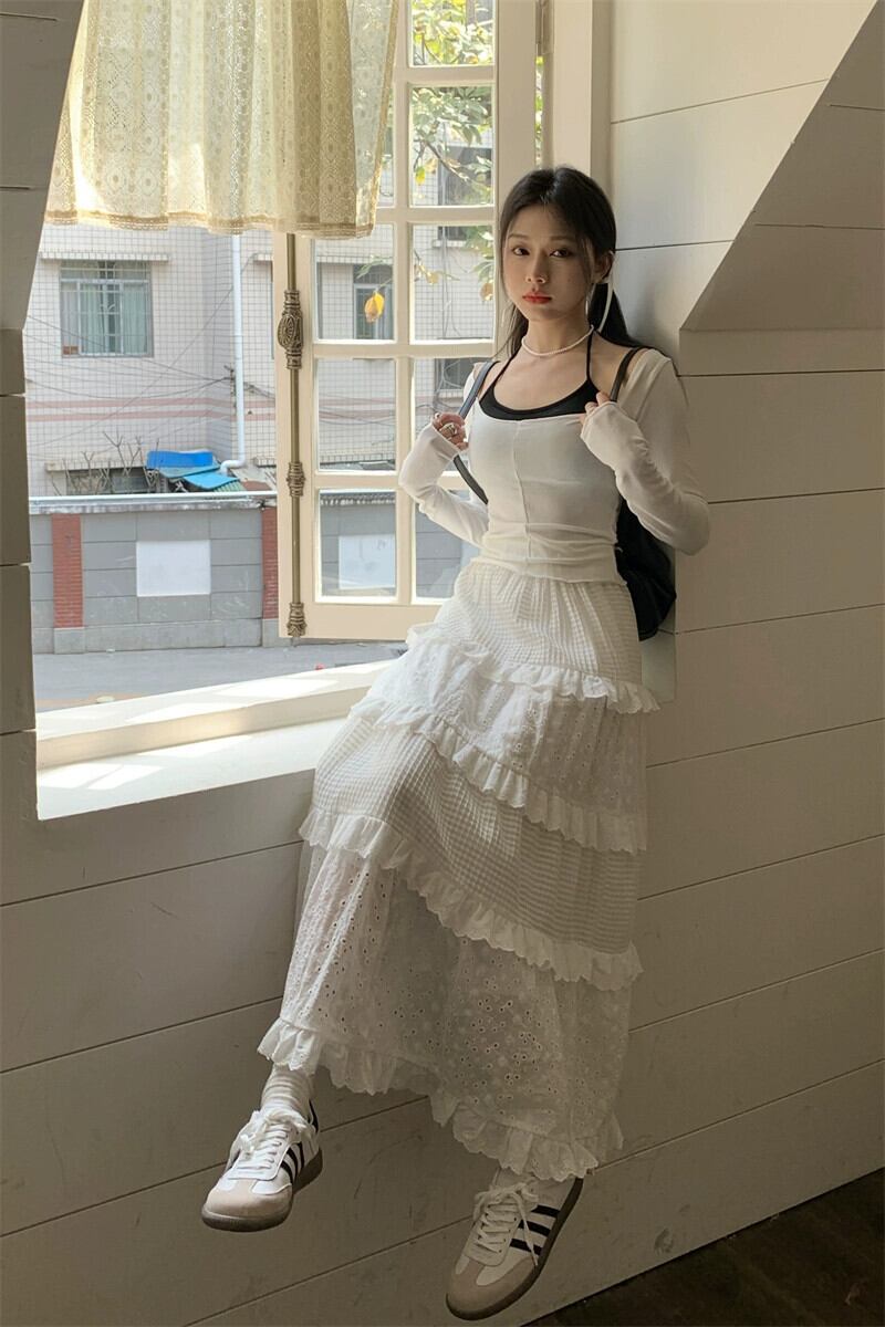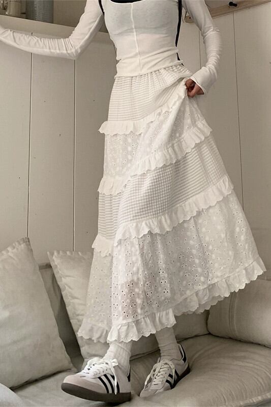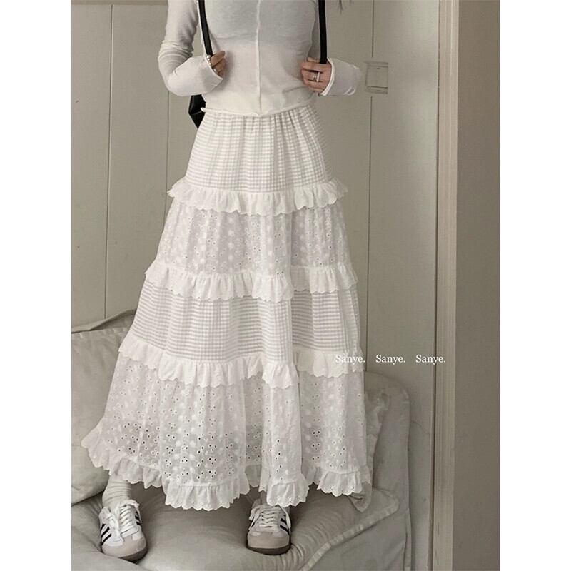 ホワイトスカート レディース 夏 ハイウエスト Aラインスカート ケーキスカート 優しい風 ロングスカート デザインセンス ニッチ かぎ針編みスカート ハイウェスト サマー 夏物 missk76457841162