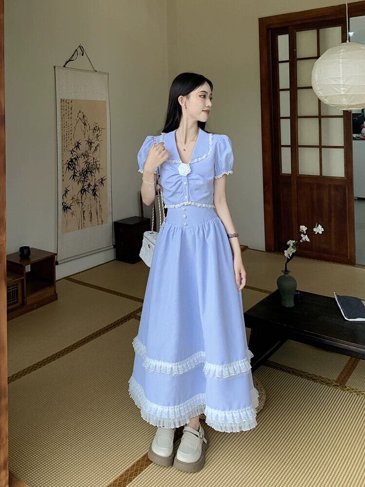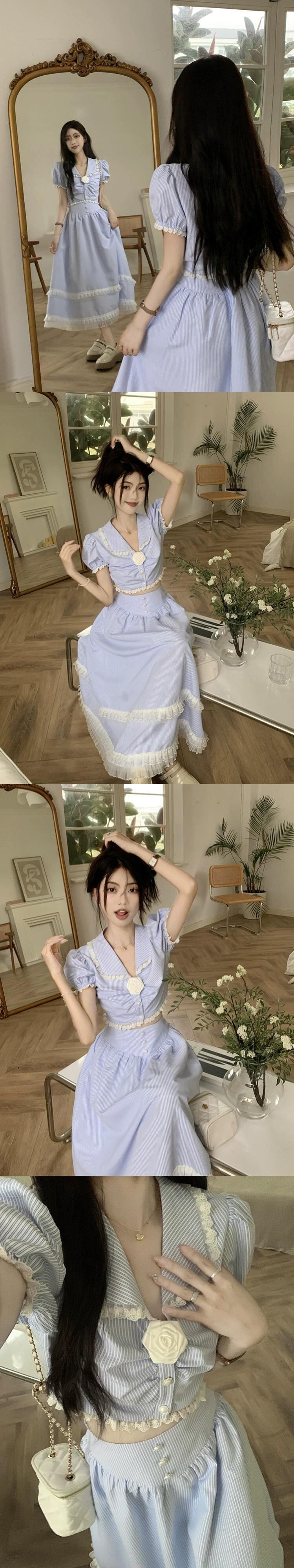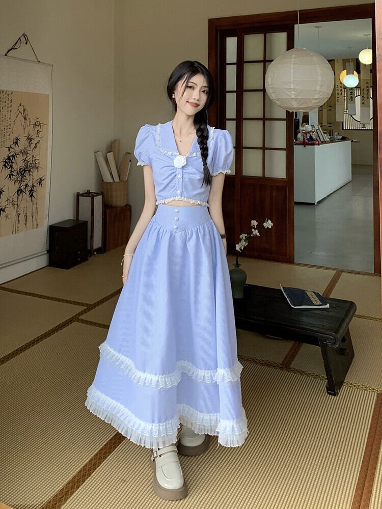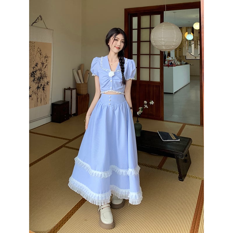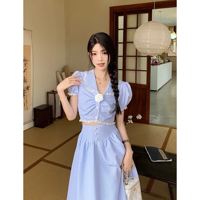 センスショートドールカラーシャツ夏 2023 新しいファッションレースステッチスカート女性のスーツ潮 サマー 夏物 missk95467523176
