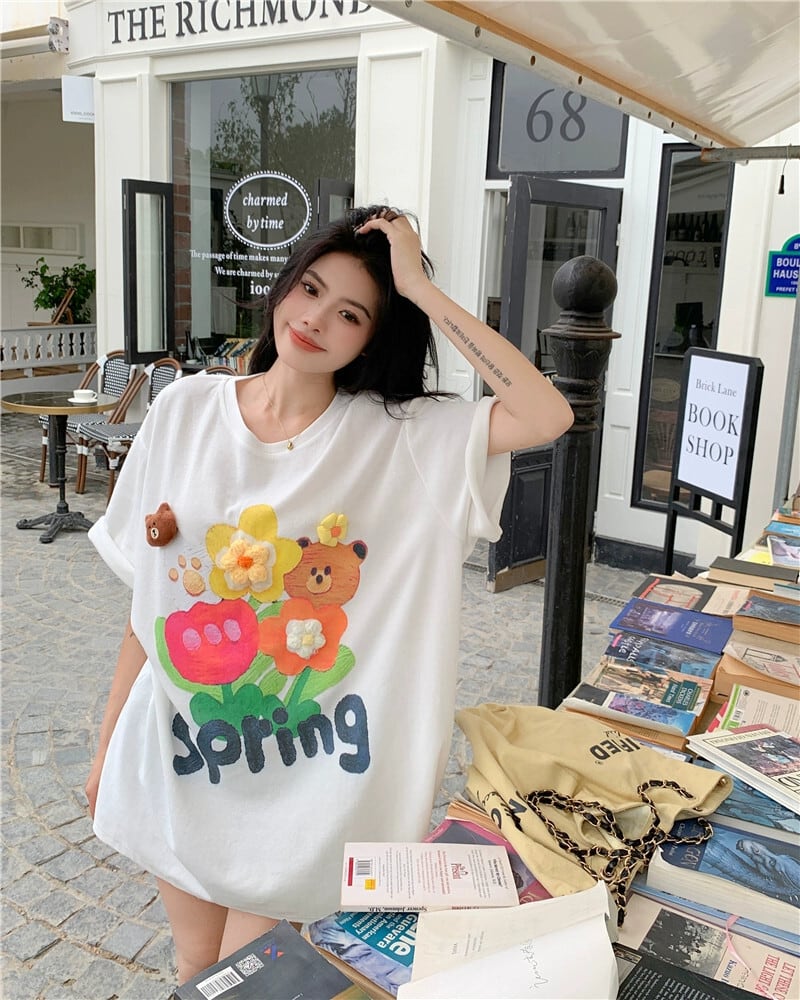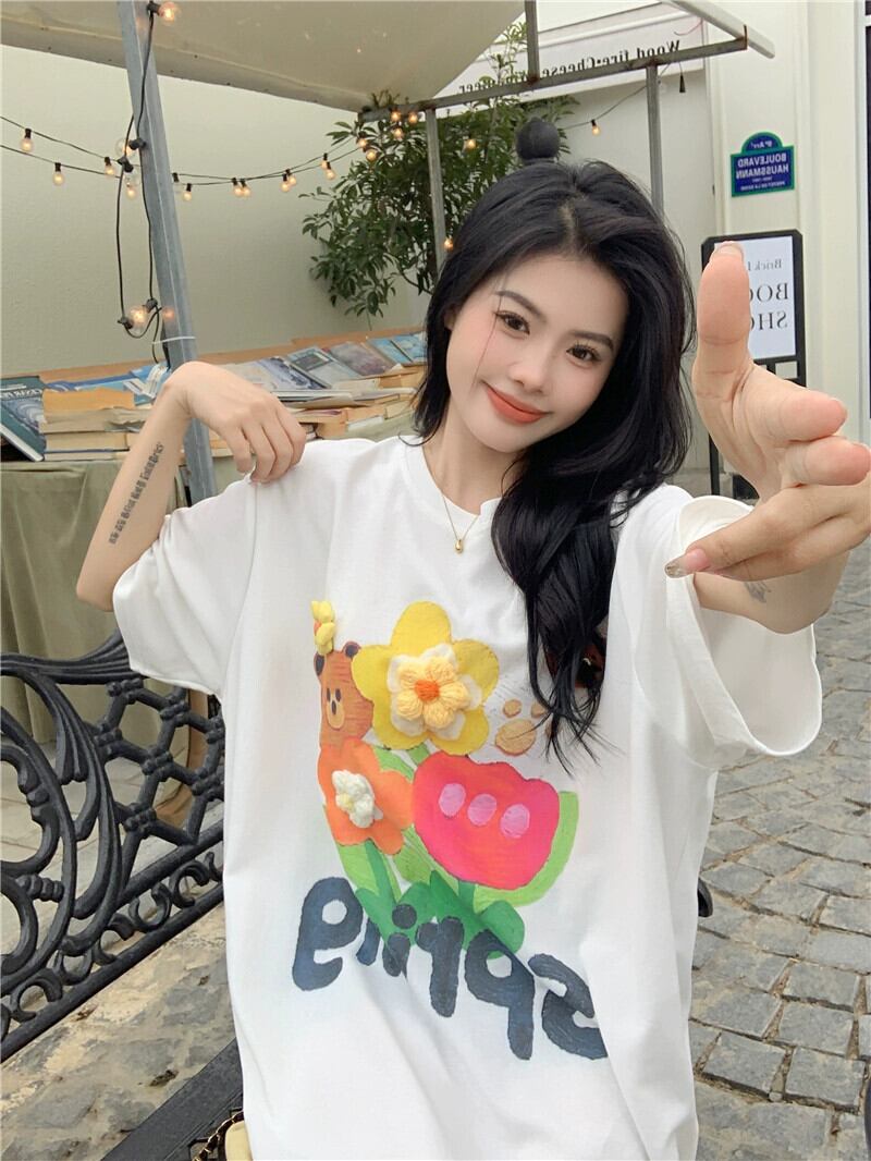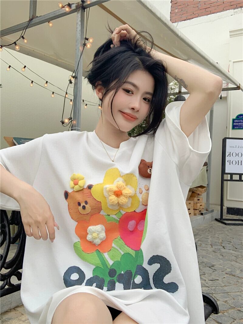 Tシャツレディース甘いデザイン立体クマレース2023夏新作ゆったりミドル丈半袖トップスイン 大人ガーリー スウィート キュート カジュアル サマー 夏物 missk92936769255