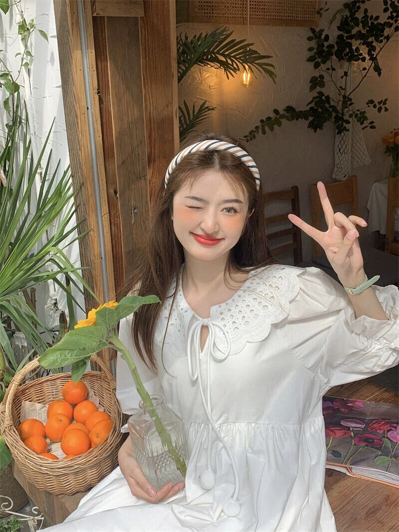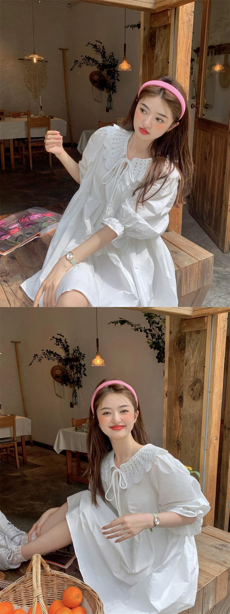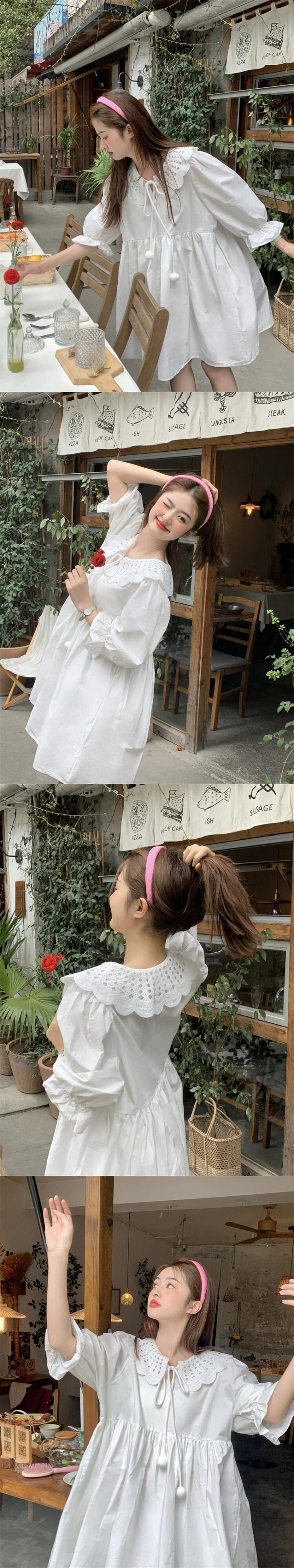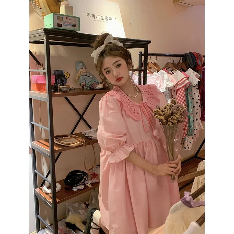 中空人形襟ネクタイ半袖ドレスの女性の夏の 2023 新しい甘いルーズハイウエストパフスリーブスカート ハイウェスト 大人ガーリー スウィート キュート カジュアル サマー 夏物 missk11385176588