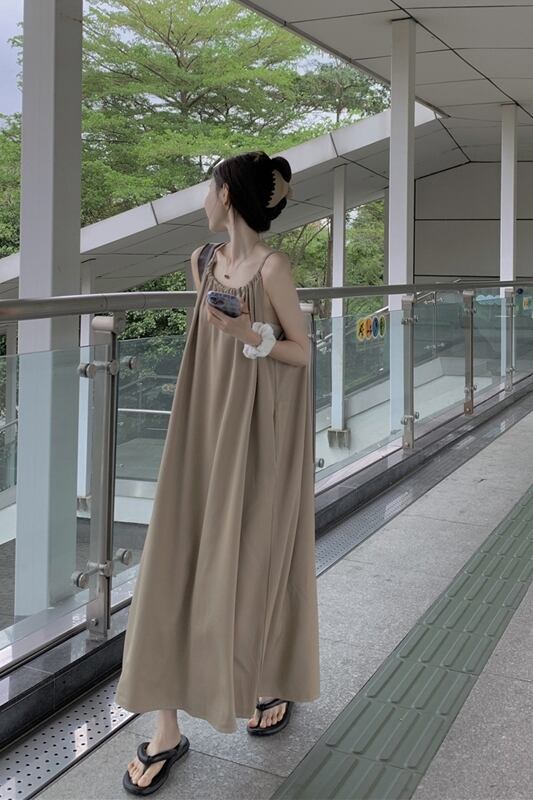 夏スタイル 2023 新しいシンプルな気質ハイウエスト痩身ロングセクションストラップデザインセンスストラップドレス女性の潮 ハイウェスト サマー 夏物 missk60297372089