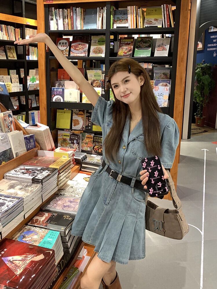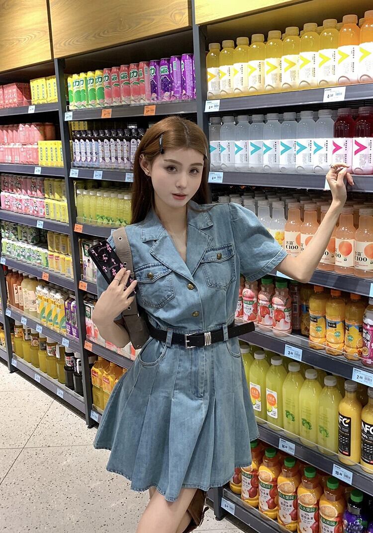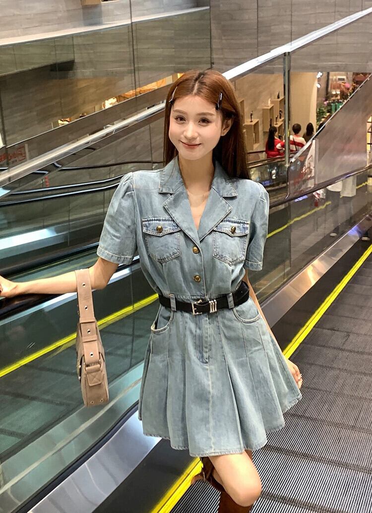 スーツカラーデニムドレスの女性の夏 2023 新しいレトロフレンチニッチウエスト痩身半袖プリーツスカート サマー 夏物 missk77514253533
