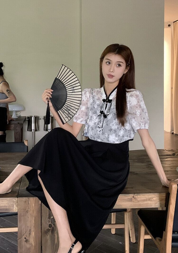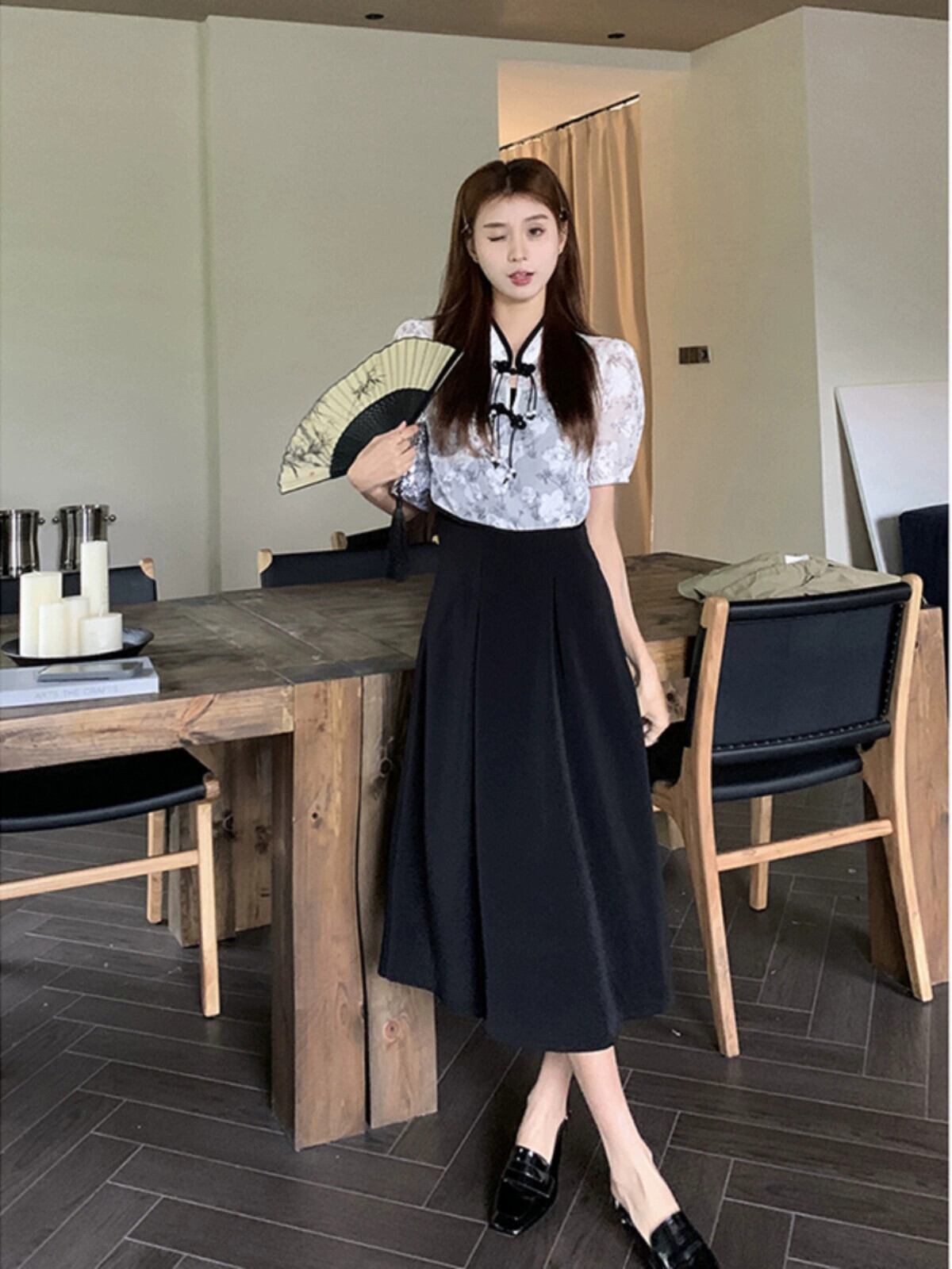 中国風のジャカードバックル薄部半袖シャツストラップドレス女性の夏の新しい禅スタイルのファッションスーツ サマー 夏物 missk44217748212